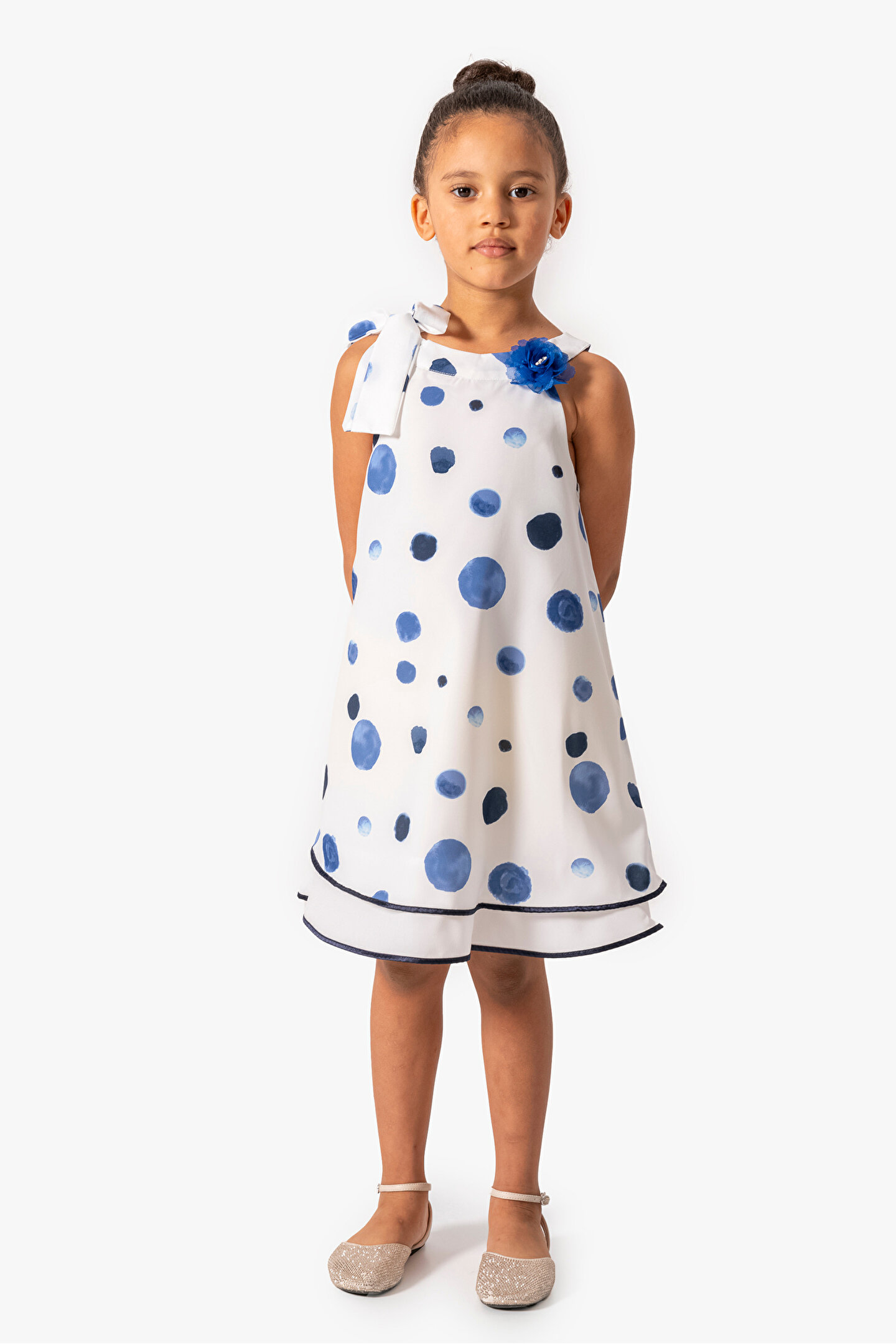 Yazlık Kısa Kollu Kolsuz Askılı Dantel Detaylı Astarlı Kız Çocuk Elbisesi: Küçük prensesinizin yaz mevsiminde özel günlerde zarafetini ve şıklığını ön plana çıkaracak bu elbise, önünde bulunan fiyonk detayı ve dantel işlemeleriyle tasarlanmıştır.; Ayrıca etek kısmında bulunan yırtmaç detayı, hareket özgürlüğü sağlarken bebeğinizin zarif bir görünüm sergilemesini sağlar.; Özellikler: Dantel Detaylar: Elbisenin ön kısmında ve kollarda bulunan dantel detaylar, zarafet ve incelik katarken, küçük prensesinizin görünümünü daha etkileyici hale getirir.; Önünde Fiyonk Detayı: Elbisenin ön kısmında bulunan fiyonk detayı, sevimliliği ve şıklığı artırır.; Küçük prensesinizin görünümüne hoş bir dokunuş ekler.; Yırtmaç Detayı: Etek kısmında bulunan yırtmaç detayı, hareket özgürlüğü sağlarken, elbisenin tasarımına dinamizm katar.; Kısa Kollu Tasarım: Sıcak yaz günlerinde rahatlıkla giyilebilecek kısa kollu tasarım, bebeğinizin serin kalmasını sağlar ve özgürce hareket etmesine olanak tanır.; Yazlık Kullanıma Uygun: Hafif yapısı ve nefes alabilen kumaşıyla yaz aylarında rahatlıkla giyilebilir.; Özel Günler İçin Uygun: Özel günlerde tercih edilebilecek şık tasarımıyla bebeğinizin her anında göz kamaştırmasını sağlar.; Bu yırtmaçlı, önü fiyonklu ve dantel detaylı kısa kollu Kolsuz Askılı kız çocuk elbisesi, küçük prensesinizin yazın serin ve şık kalmasını sağlarken, aynı zamanda özel günlerde de zarafetini tamamlar.; Zarif detaylarıyla bezenmiş bu elbise, bebeğinizin tarzını ve güzelliğini ön plana çıkarır.
