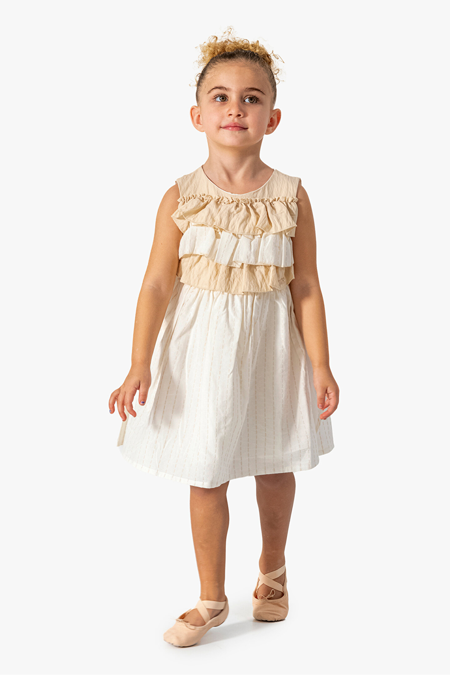 Yazlık Kısa Kollu Kolsuz Askılı Dantel Detaylı Astarlı Kız Çocuk Elbisesi: Küçük prensesinizin yaz mevsiminde özel günlerde zarafetini ve şıklığını ön plana çıkaracak bu elbise, önünde bulunan fiyonk detayı ve dantel işlemeleriyle tasarlanmıştır.; Ayrıca etek kısmında bulunan yırtmaç detayı, hareket özgürlüğü sağlarken bebeğinizin zarif bir görünüm sergilemesini sağlar.; Özellikler: Dantel Detaylar: Elbisenin ön kısmında ve kollarda bulunan dantel detaylar, zarafet ve incelik katarken, küçük prensesinizin görünümünü daha etkileyici hale getirir.; Önünde Fiyonk Detayı: Elbisenin ön kısmında bulunan fiyonk detayı, sevimliliği ve şıklığı artırır.; Küçük prensesinizin görünümüne hoş bir dokunuş ekler.; Yırtmaç Detayı: Etek kısmında bulunan yırtmaç detayı, hareket özgürlüğü sağlarken, elbisenin tasarımına dinamizm katar.; Kısa Kollu Tasarım: Sıcak yaz günlerinde rahatlıkla giyilebilecek kısa kollu tasarım, bebeğinizin serin kalmasını sağlar ve özgürce hareket etmesine olanak tanır.; Yazlık Kullanıma Uygun: Hafif yapısı ve nefes alabilen kumaşıyla yaz aylarında rahatlıkla giyilebilir.; Özel Günler İçin Uygun: Özel günlerde tercih edilebilecek şık tasarımıyla bebeğinizin her anında göz kamaştırmasını sağlar.; Bu yırtmaçlı, önü fiyonklu ve dantel detaylı kısa kollu Kolsuz Askılı kız çocuk elbisesi, küçük prensesinizin yazın serin ve şık kalmasını sağlarken, aynı zamanda özel günlerde de zarafetini tamamlar.; Zarif detaylarıyla bezenmiş bu elbise, bebeğinizin tarzını ve güzelliğini ön plana çıkarır.