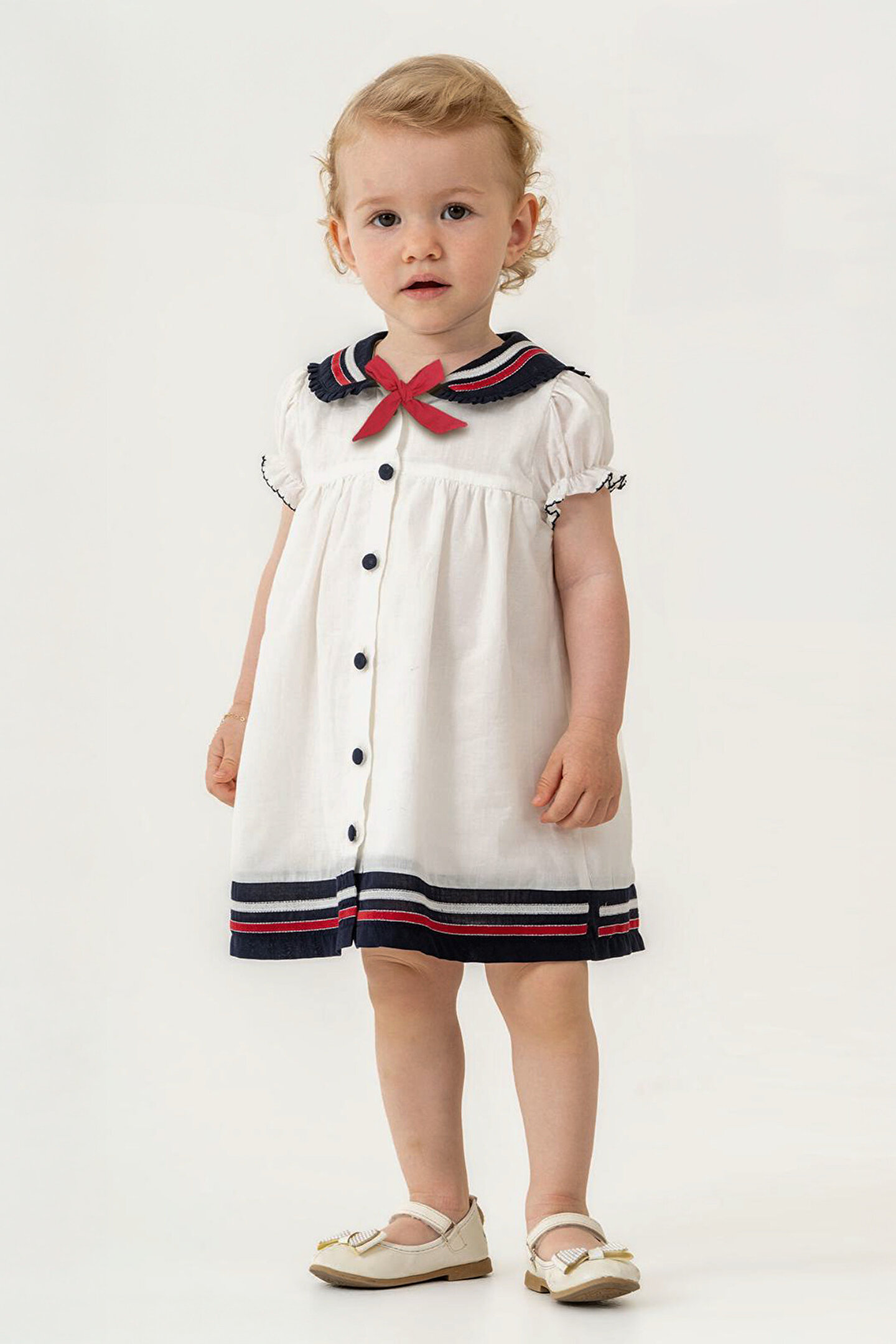 Yazlık Kısa Kollu Kolsuz Askılı Dantel Detaylı Astarlı Kız Çocuk Elbisesi: Küçük prensesinizin yaz mevsiminde özel günlerde zarafetini ve şıklığını ön plana çıkaracak bu elbise, önünde bulunan fiyonk detayı ve dantel işlemeleriyle tasarlanmıştır.; Ayrıca etek kısmında bulunan yırtmaç detayı, hareket özgürlüğü sağlarken bebeğinizin zarif bir görünüm sergilemesini sağlar.; Özellikler: Dantel Detaylar: Elbisenin ön kısmında ve kollarda bulunan dantel detaylar, zarafet ve incelik katarken, küçük prensesinizin görünümünü daha etkileyici hale getirir.; Önünde Fiyonk Detayı: Elbisenin ön kısmında bulunan fiyonk detayı, sevimliliği ve şıklığı artırır.; Küçük prensesinizin görünümüne hoş bir dokunuş ekler.; Yırtmaç Detayı: Etek kısmında bulunan yırtmaç detayı, hareket özgürlüğü sağlarken, elbisenin tasarımına dinamizm katar.; Kısa Kollu Tasarım: Sıcak yaz günlerinde rahatlıkla giyilebilecek kısa kollu tasarım, bebeğinizin serin kalmasını sağlar ve özgürce hareket etmesine olanak tanır.; Yazlık Kullanıma Uygun: Hafif yapısı ve nefes alabilen kumaşıyla yaz aylarında rahatlıkla giyilebilir.; Özel Günler İçin Uygun: Özel günlerde tercih edilebilecek şık tasarımıyla bebeğinizin her anında göz kamaştırmasını sağlar.; Bu yırtmaçlı, önü fiyonklu ve dantel detaylı kısa kollu Kolsuz Askılı kız çocuk elbisesi, küçük prensesinizin yazın serin ve şık kalmasını sağlarken, aynı zamanda özel günlerde de zarafetini tamamlar.; Zarif detaylarıyla bezenmiş bu elbise, bebeğinizin tarzını ve güzelliğini ön plana çıkarır.