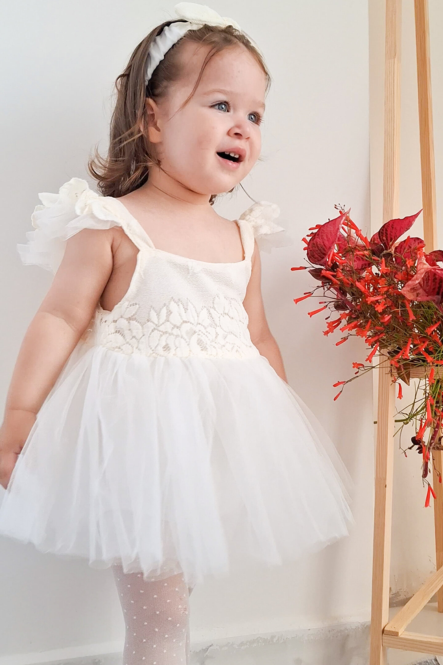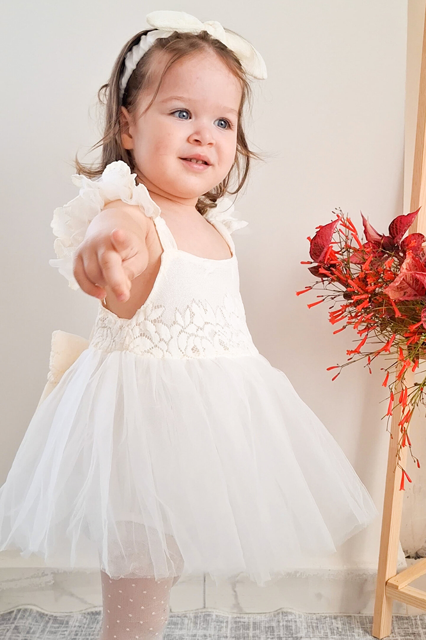 Yazlık Kısa Kollu Kolsuz Askılı Dantel Detaylı Astarlı Kız Çocuk Elbisesi: Küçük prensesinizin yaz mevsiminde özel günlerde zarafetini ve şıklığını ön plana çıkaracak bu elbise, önünde bulunan fiyonk detayı ve dantel işlemeleriyle tasarlanmıştır.; Ayrıca etek kısmında bulunan yırtmaç detayı, hareket özgürlüğü sağlarken bebeğinizin zarif bir görünüm sergilemesini sağlar.; Özellikler: Dantel Detaylar: Elbisenin ön kısmında ve kollarda bulunan dantel detaylar, zarafet ve incelik katarken, küçük prensesinizin görünümünü daha etkileyici hale getirir.; Önünde Fiyonk Detayı: Elbisenin ön kısmında bulunan fiyonk detayı, sevimliliği ve şıklığı artırır.; Küçük prensesinizin görünümüne hoş bir dokunuş ekler.; Yırtmaç Detayı: Etek kısmında bulunan yırtmaç detayı, hareket özgürlüğü sağlarken, elbisenin tasarımına dinamizm katar.; Kısa Kollu Tasarım: Sıcak yaz günlerinde rahatlıkla giyilebilecek kısa kollu tasarım, bebeğinizin serin kalmasını sağlar ve özgürce hareket etmesine olanak tanır.; Yazlık Kullanıma Uygun: Hafif yapısı ve nefes alabilen kumaşıyla yaz aylarında rahatlıkla giyilebilir.; Özel Günler İçin Uygun: Özel günlerde tercih edilebilecek şık tasarımıyla bebeğinizin her anında göz kamaştırmasını sağlar.; Bu yırtmaçlı, önü fiyonklu ve dantel detaylı kısa kollu Kolsuz Askılı kız çocuk elbisesi, küçük prensesinizin yazın serin ve şık kalmasını sağlarken, aynı zamanda özel günlerde de zarafetini tamamlar.; Zarif detaylarıyla bezenmiş bu elbise, bebeğinizin tarzını ve güzelliğini ön plana çıkarır.