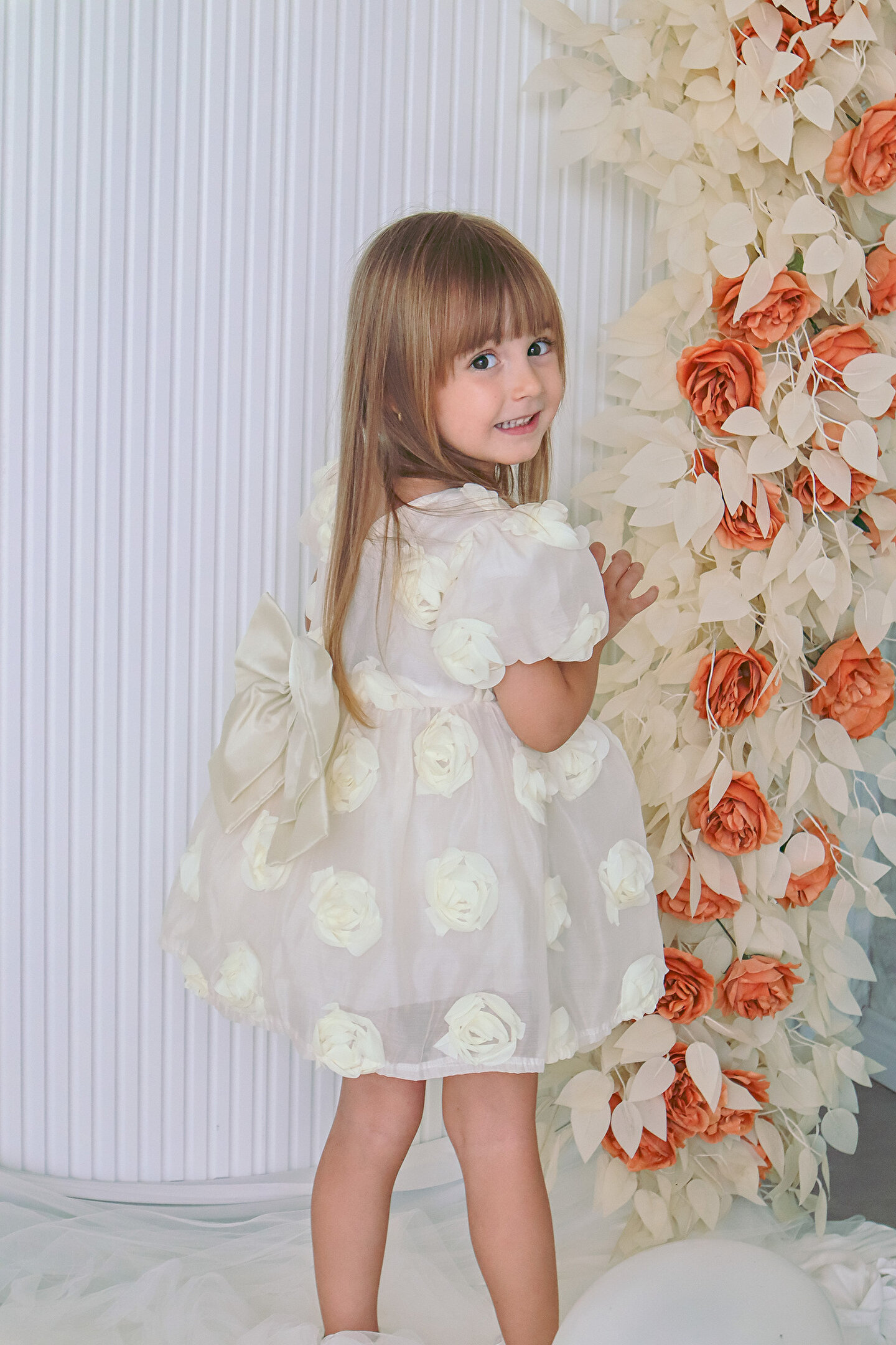 Yazlık Kısa Kollu Kolsuz Askılı Dantel Detaylı Astarlı Kız Çocuk Elbisesi: Küçük prensesinizin yaz mevsiminde özel günlerde zarafetini ve şıklığını ön plana çıkaracak bu elbise, önünde bulunan fiyonk detayı ve dantel işlemeleriyle tasarlanmıştır.; Ayrıca etek kısmında bulunan yırtmaç detayı, hareket özgürlüğü sağlarken bebeğinizin zarif bir görünüm sergilemesini sağlar.; Özellikler: Dantel Detaylar: Elbisenin ön kısmında ve kollarda bulunan dantel detaylar, zarafet ve incelik katarken, küçük prensesinizin görünümünü daha etkileyici hale getirir.; Önünde Fiyonk Detayı: Elbisenin ön kısmında bulunan fiyonk detayı, sevimliliği ve şıklığı artırır.; Küçük prensesinizin görünümüne hoş bir dokunuş ekler.; Yırtmaç Detayı: Etek kısmında bulunan yırtmaç detayı, hareket özgürlüğü sağlarken, elbisenin tasarımına dinamizm katar.; Kısa Kollu Tasarım: Sıcak yaz günlerinde rahatlıkla giyilebilecek kısa kollu tasarım, bebeğinizin serin kalmasını sağlar ve özgürce hareket etmesine olanak tanır.; Yazlık Kullanıma Uygun: Hafif yapısı ve nefes alabilen kumaşıyla yaz aylarında rahatlıkla giyilebilir.; Özel Günler İçin Uygun: Özel günlerde tercih edilebilecek şık tasarımıyla bebeğinizin her anında göz kamaştırmasını sağlar.; Bu yırtmaçlı, önü fiyonklu ve dantel detaylı kısa kollu Kolsuz Askılı kız çocuk elbisesi, küçük prensesinizin yazın serin ve şık kalmasını sağlarken, aynı zamanda özel günlerde de zarafetini tamamlar.; Zarif detaylarıyla bezenmiş bu elbise, bebeğinizin tarzını ve güzelliğini ön plana çıkarır