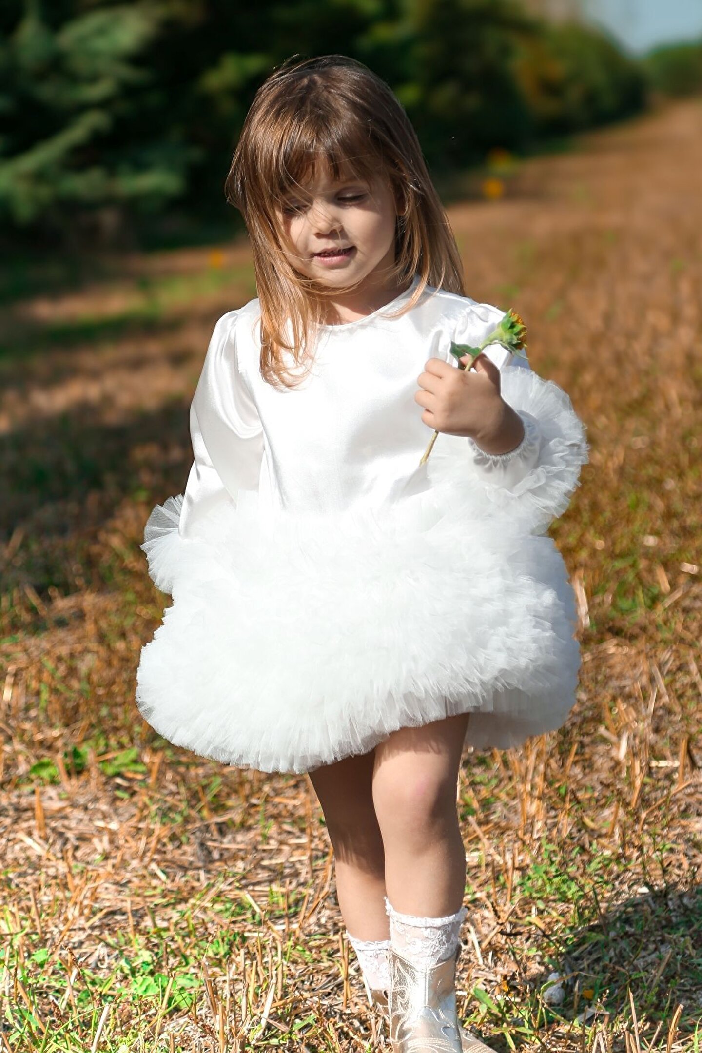 Üst simli , alt tütüsü kabarık tütülü, uzun kol ve kol ucunda tütü lastik dönmektedir; Arkasında büyük dolgulu fiyonk bulunmakta; Fermuarlıdır; Altında tül kullanılmıştır kabarık dursun diye; Tülleri bebeğinizi rahatsız etmemesi için içinde pamuk astar vardır; Ürünün daha uzun süreli kullanılması için aşağıdaki yıkama talimatlarına uyulması önerilir; Eğer mümkünse ilk yıkamanızı elde yapılması, sonraki yıkamalar için 30 derecede düşük devir, yumuşatıcı kullanılmadan ve sıkma yapmadan yıkama yapılması tavsiye edilir;