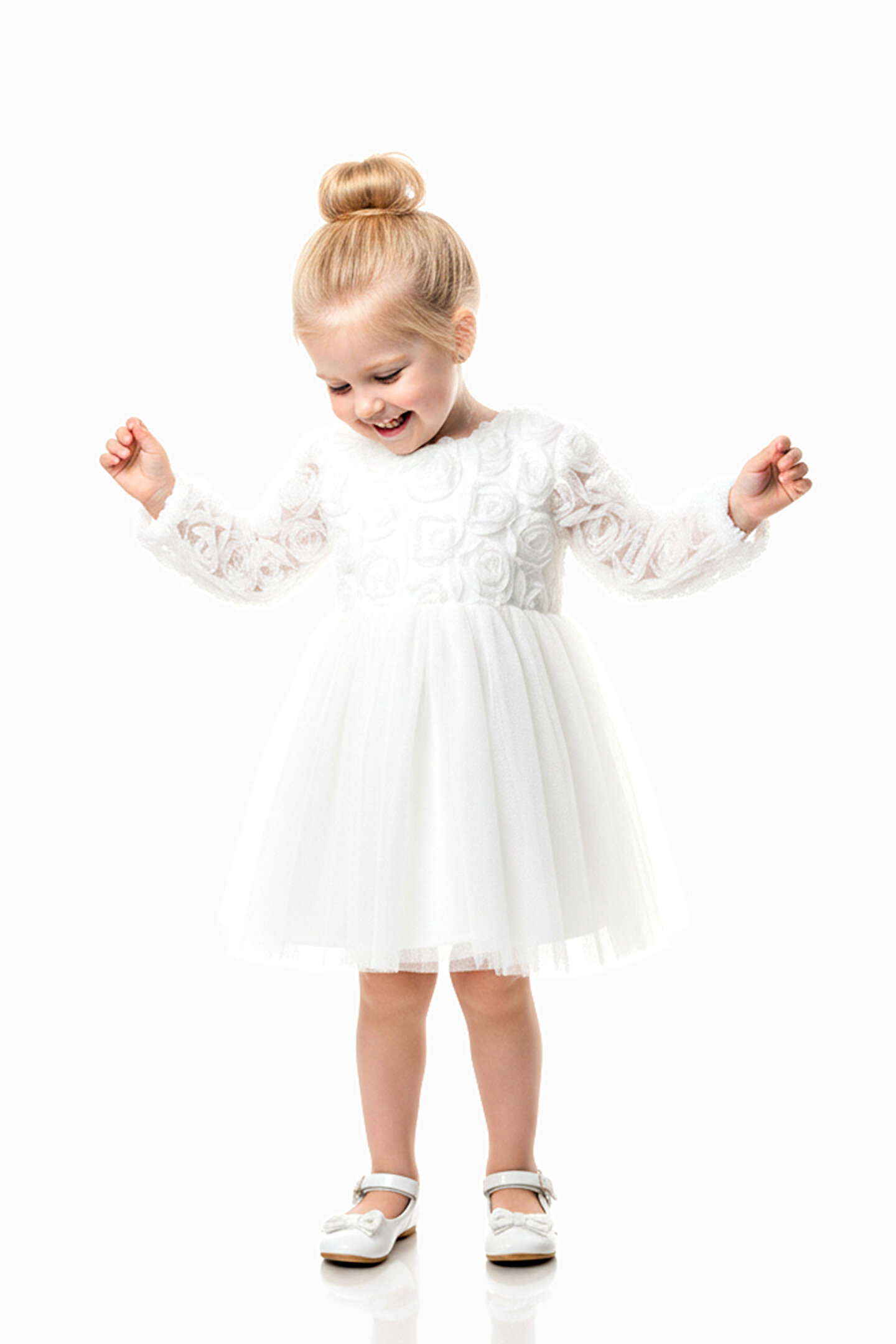 Baby Animals Kız Bebek Kız Çocuk Doğum Günü Parti Düğün Elbise Uzunkollu Güllü Fiyonklu Tüllü Tütü Astarlı