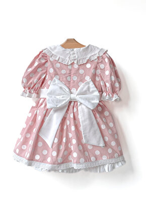 Baby Animals Kız Bebek Kız Çocuk Doğum Günü Parti Düğün Elbise Yarım Kol Astarlı Puanlı Fiyonklu Elbise