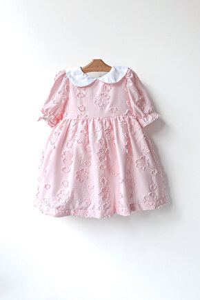 Baby Animals Kız Bebek Kız Çocuk Doğum Günü Parti Düğün Elbise Yarım Kol Astarlı Yakalı Çiçekli Elbise