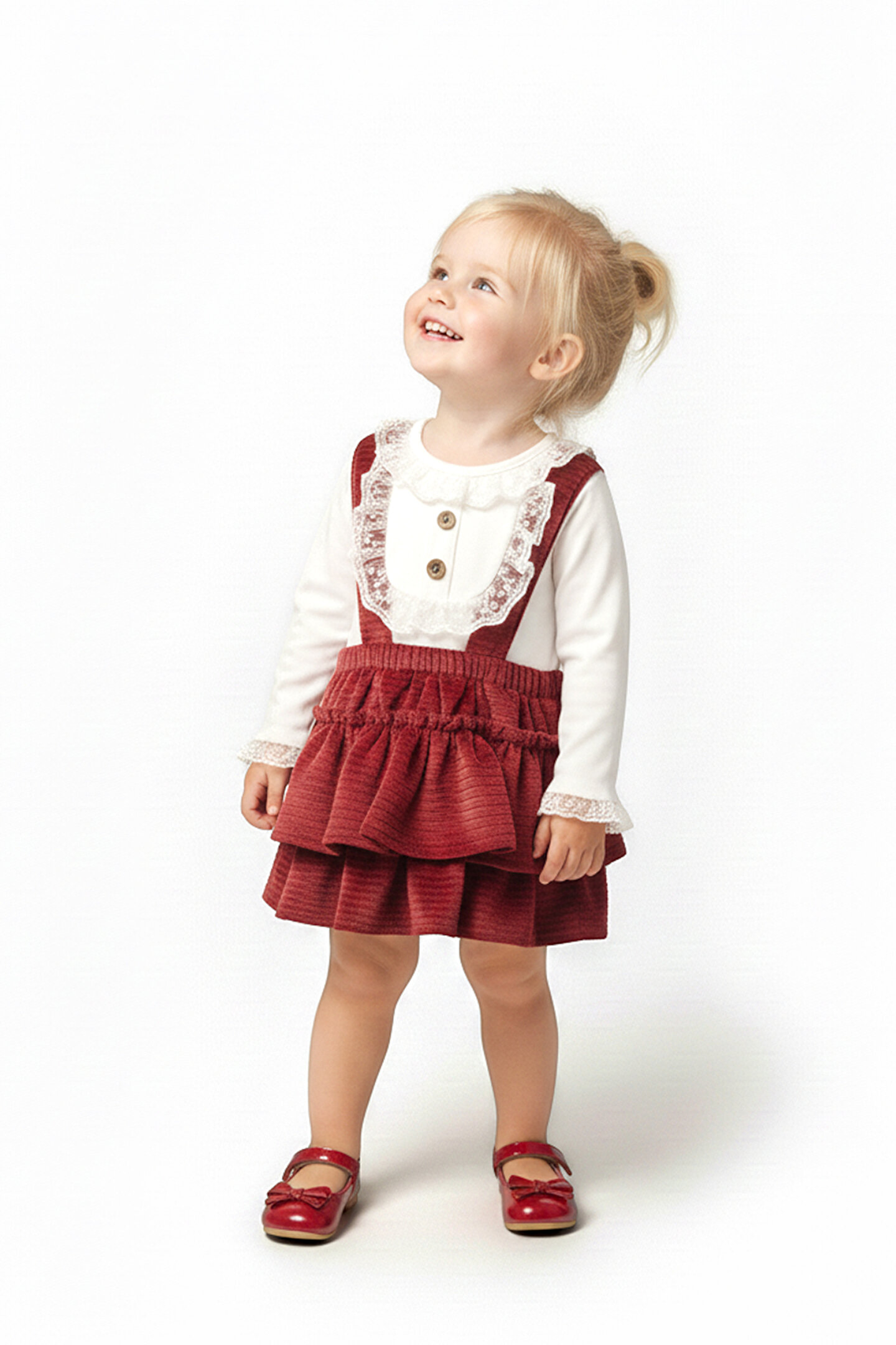 Mevsimlik Uzun Kollu Dantel Detaylı Kız Çocuk Elbise Salopet: Küçük prensesinizin yaz mevsiminde özel günlerde zarafetini ve şıklığını ön plana çıkaracak bu elbise Salopet, önünde bulunan fiyonk detayı ve dantel işlemeleriyle tasarlanmıştır.; Ayrıca etek kısmında bulunan yırtmaç detayı, hareket özgürlüğü sağlarken bebeğinizin zarif bir görünüm sergilemesini sağlar.; Özellikler: Dantel Detaylar: Elbisenin Salopet ön kısmında ve kollarda bulunan dantel detaylar, zarafet ve incelik katarken, küçük prensesinizin görünümünü daha etkileyici hale getirir.; Önünde Fiyonk Detayı: Elbisenin ön kısmında bulunan fiyonk detayı, sevimliliği ve şıklığı artırır.; Küçük prensesinizin görünümüne hoş bir dokunuş ekler.; Yırtmaç Detayı: Etek kısmında bulunan yırtmaç detayı, hareket özgürlüğü sağlarken, elbisenin tasarımına dinamizm katar.; Uzun Kollu Tasarım:Rahatlıkla giyilebilecek Uzun kollu tasarım, bebeğinizin serin kalmasını sağlar ve özgürce hareket etmesine olanak tanır.; Mevsimlik Kullanıma Uygun: Hafif yapısı ve nefes alabilen kumaşıyla yaz aylarında rahatlıkla giyilebilir.; Özel Günler İçin Uygun: Özel günlerde tercih edilebilecek şık tasarımıyla bebeğinizin her anında göz kamaştırmasını sağlar.; Bu yırtmaçlı, önü fiyonklu ve dantel detaylı Uzun kollu kız çocuk elbisesi Salopet, küçük prensesinizin serin ve şık kalmasını sağlarken, aynı zamanda özel günlerde de zarafetini tamamlar.; Zarif detaylarıyla bezenmiş bu elbise Romper, bebeğinizin tarzını ve güzelliğini ön plana çıkarır.
