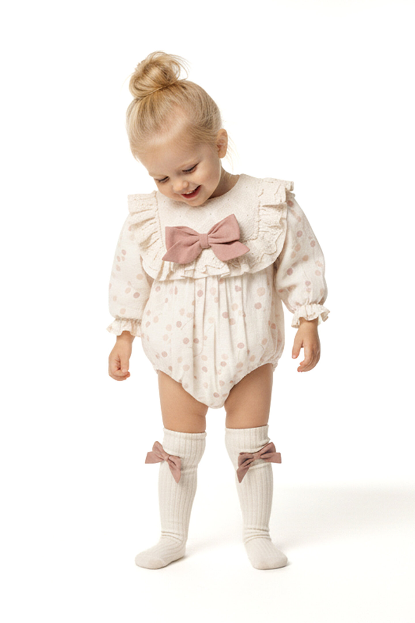 Mevsimlik Uzun Kollu Dantel Detaylı Kız Çocuk Elbise Romper: Küçük prensesinizin yaz mevsiminde özel günlerde zarafetini ve şıklığını ön plana çıkaracak bu elbise Romper, önünde bulunan fiyonk detayı ve dantel işlemeleriyle tasarlanmıştır.; Ayrıca etek kısmında bulunan yırtmaç detayı, hareket özgürlüğü sağlarken bebeğinizin zarif bir görünüm sergilemesini sağlar.; Özellikler: Dantel Detaylar: Elbisenin Romper ön kısmında ve kollarda bulunan dantel detaylar, zarafet ve incelik katarken, küçük prensesinizin görünümünü daha etkileyici hale getirir.; Önünde Fiyonk Detayı: Elbisenin ön kısmında bulunan fiyonk detayı, sevimliliği ve şıklığı artırır.; Küçük prensesinizin görünümüne hoş bir dokunuş ekler.; Yırtmaç Detayı: Etek kısmında bulunan yırtmaç detayı, hareket özgürlüğü sağlarken, elbisenin tasarımına dinamizm katar.; Uzun Kollu Tasarım:Rahatlıkla giyilebilecek Uzun kollu tasarım, bebeğinizin serin kalmasını sağlar ve özgürce hareket etmesine olanak tanır.; Mevsimlik Kullanıma Uygun: Hafif yapısı ve nefes alabilen kumaşıyla rahatlıkla giyilebilir.; Özel Günler İçin Uygun: Özel günlerde tercih edilebilecek şık tasarımıyla bebeğinizin her anında göz kamaştırmasını sağlar.; Bu yırtmaçlı, önü fiyonklu ve dantel detaylı Uzun kollu kız çocuk elbisesi Romper, küçük prensesinizin serin ve şık kalmasını sağlarken, aynı zamanda özel günlerde de zarafetini tamamlar.; Zarif detaylarıyla bezenmiş bu elbise Romper, bebeğinizin tarzını ve güzelliğini ön plana çıkarır.