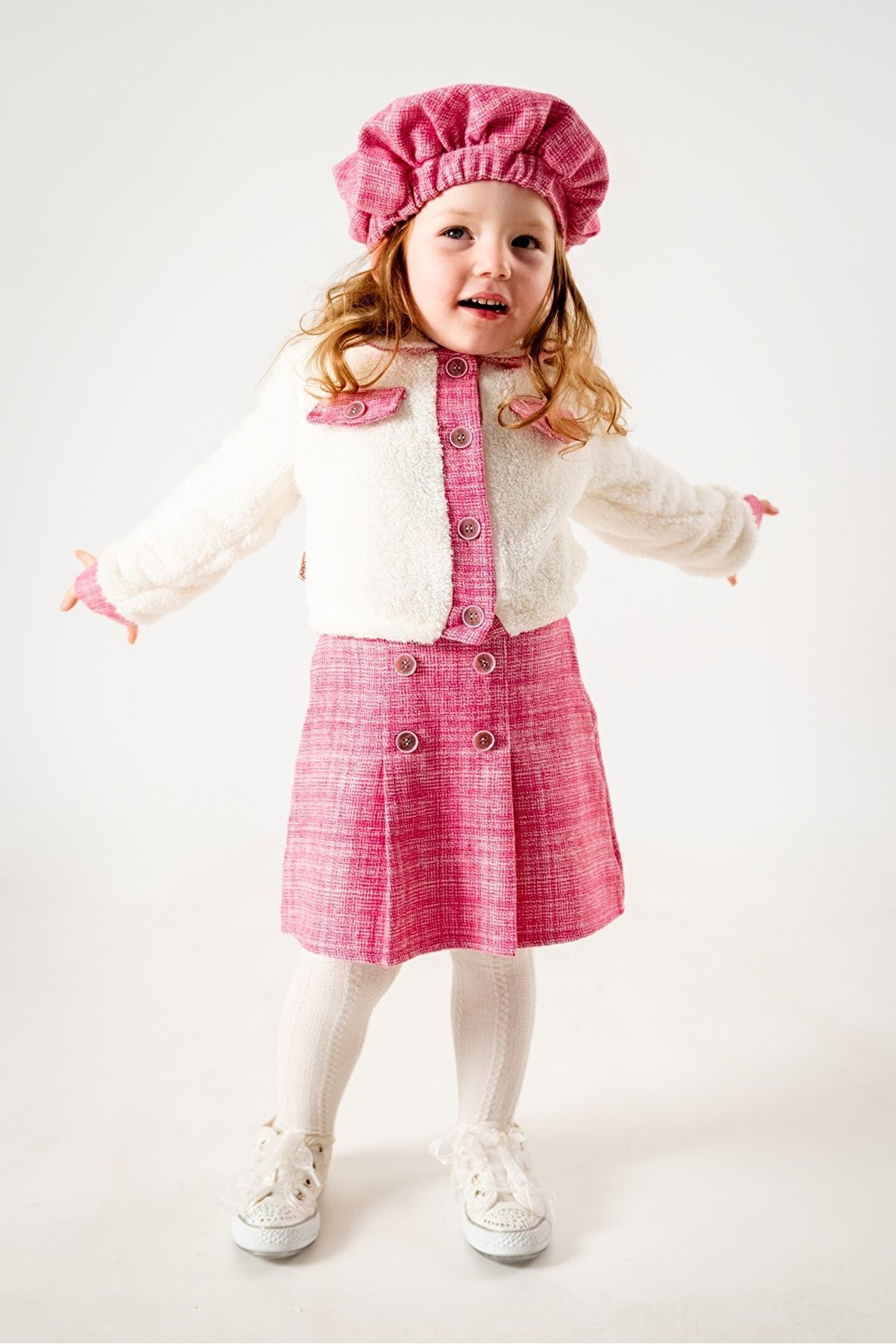Baby Animals Kız Çocuk Kız Bebek Hırkalı Şapkalı Etekli Welsoft Peluş Oduncu Üçlü elbise takım
