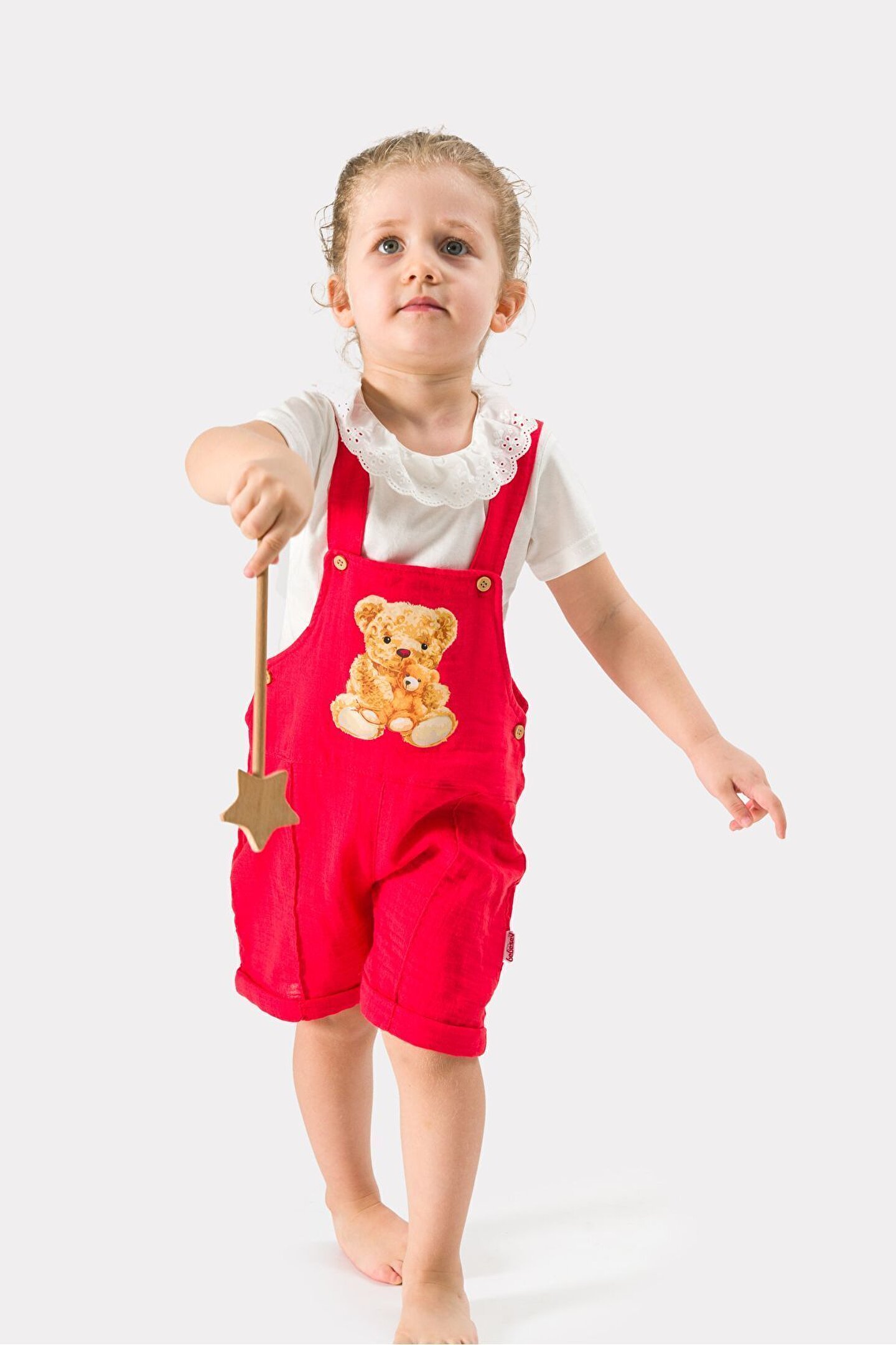 Günlük kullanım için ideal, rahat ve şık bir tasarıma sahip baskılı müslin alt; üst takım; Her yaş grubuna uygun, geniş beden skalasıyla çocukların konforunu ön planda tutan tasarım; Yaz aylarında serin tutan orta kalınlıkta dokuma kumaş yapısı ile gün boyu rahatlık sağlar; Standart kol ve normal bel kesimiyle hareket özgürlüğünü kısıtlamadan rahat bir kullanım sunar; Bebe yaka tasarımı ile hem şıklığı hem de konforu bir arada barındırır; Çevre dostu tercihler için geri dönüştürülebilir malzemelerden üretilmiştir; organik pamuklu materyaliyle cildi tahriş etmez; Kısa kol boyu sayesinde yazın sıcak günlerinde serinlik hissi verirken, dokuma kumaşı dayanıklılığı artırır;