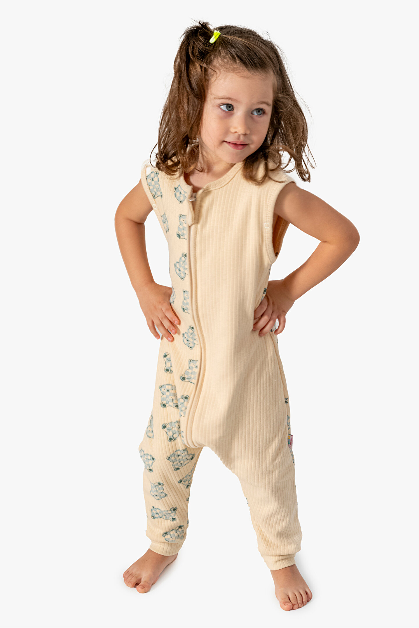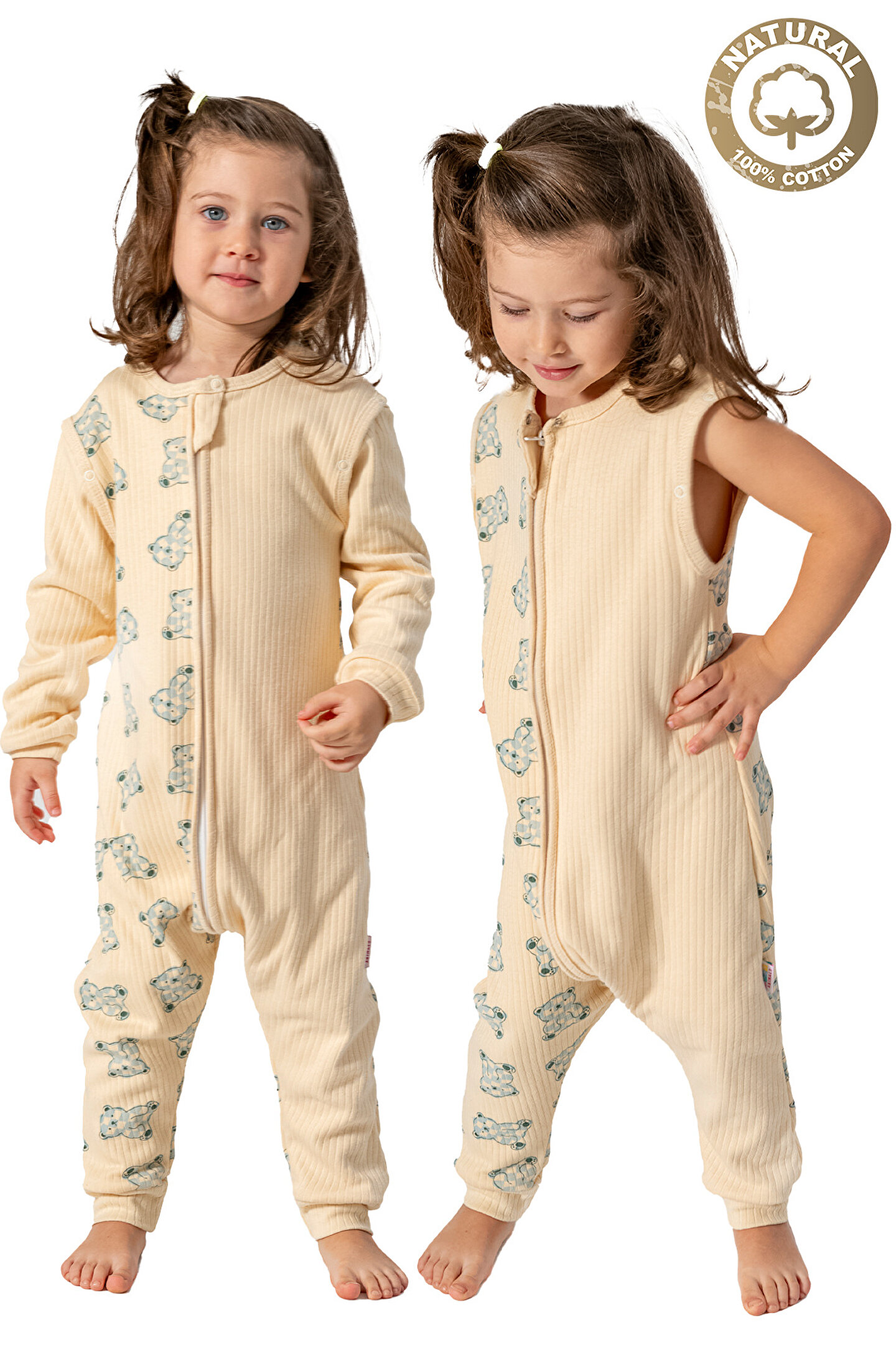 Baby Animals Kız Erkek Unisex Mevsimlik Kolları Çıkan Çift Kat Organik %100 Doğal Pamuk Bebek Çocuk Uyku Tulumu