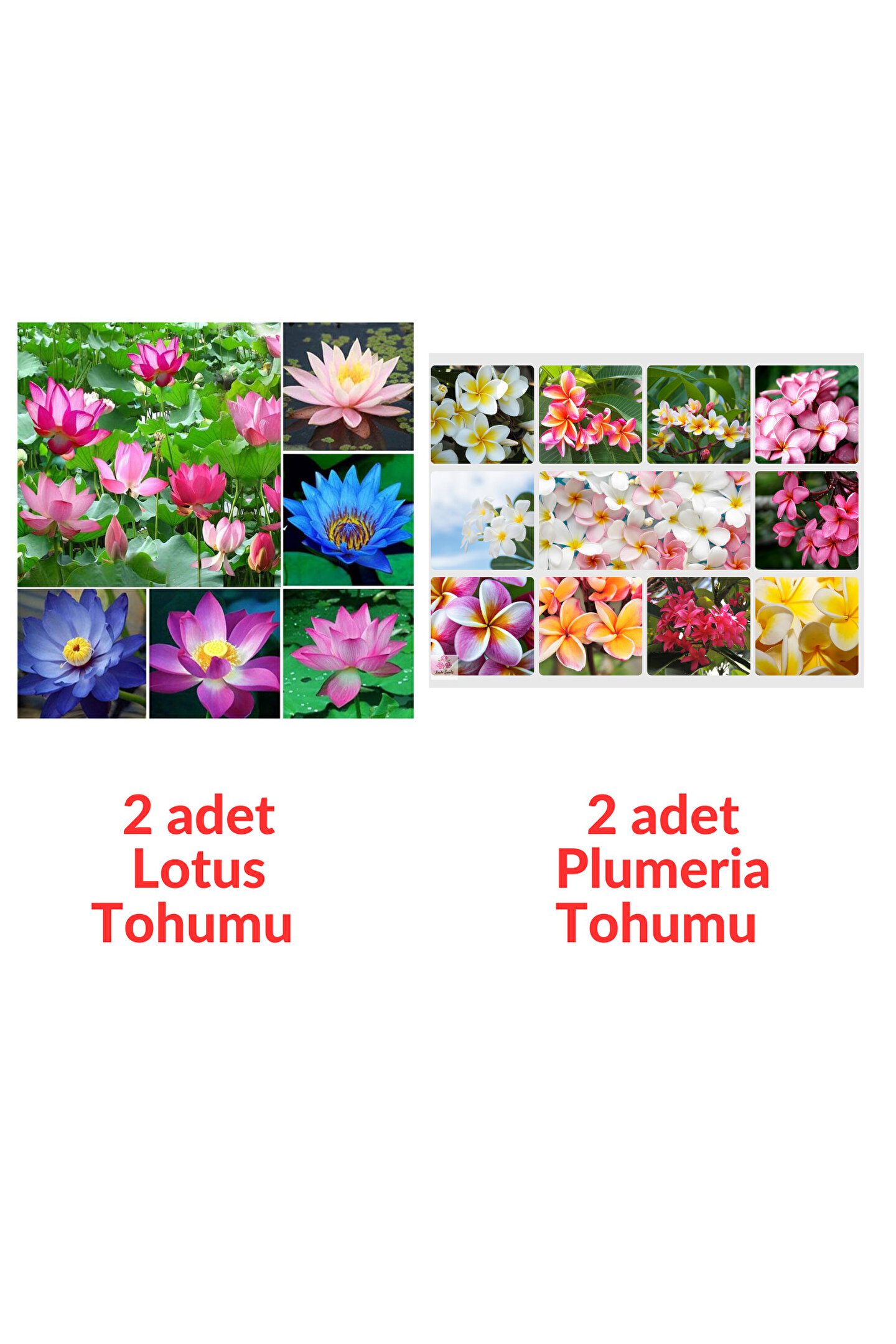 2 Adet Karışık Renklerde Lotus (Nilüfer) Çiçeği Tohumu - 2 Adet Plumeria Tohumu - Toplam 4 adet