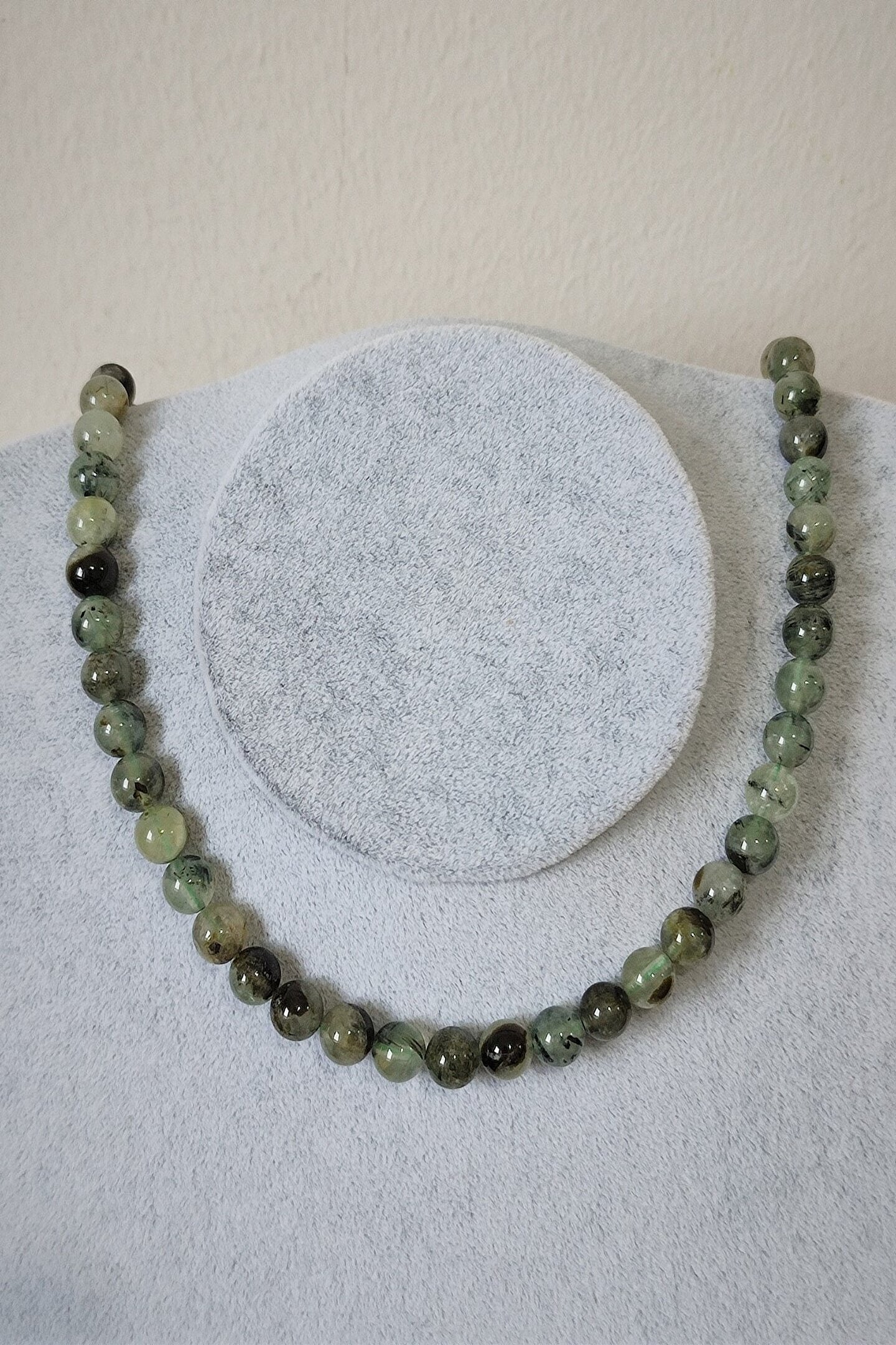 Doğal taş kullanımı sayesinde her kolye benzersiz ve otantik bir görünüm sunar; 8 mm kalınlığındaki prehnit prinayt doğaltaş, zarif ve dayanıklı bir yapıya sahiptir; Sertifikalı olması, ürünün kalitesini ve orijinalliğini garanti eder; Bijuteri kolye, şıklığınızı tamamlayacak ve günlük kullanım için idealdir;