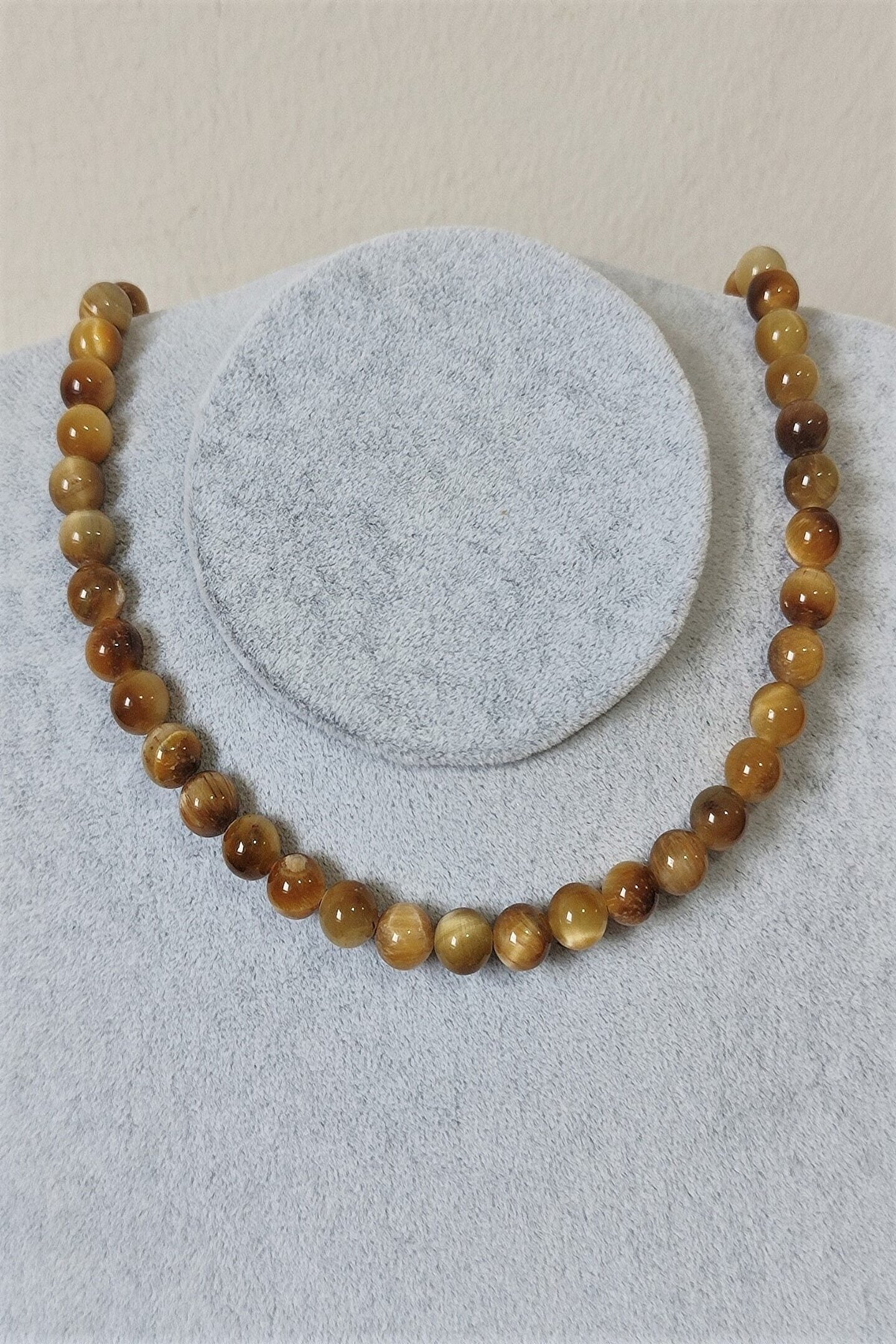 - Doğal taş kullanımı sayesinde her kolye benzersiz ve otantik bir görünüm sunar; - Sarı kaplangözü doğaltaşının eşsiz parlaklığı ve canlı rengi, kolyenize zarif bir dokunuş katıyor; - 8 mm kalınlığındaki taşlar, hem şıklığı hem de dayanıklılığı bir arada sunarak uzun süreli kullanım vaat eder;