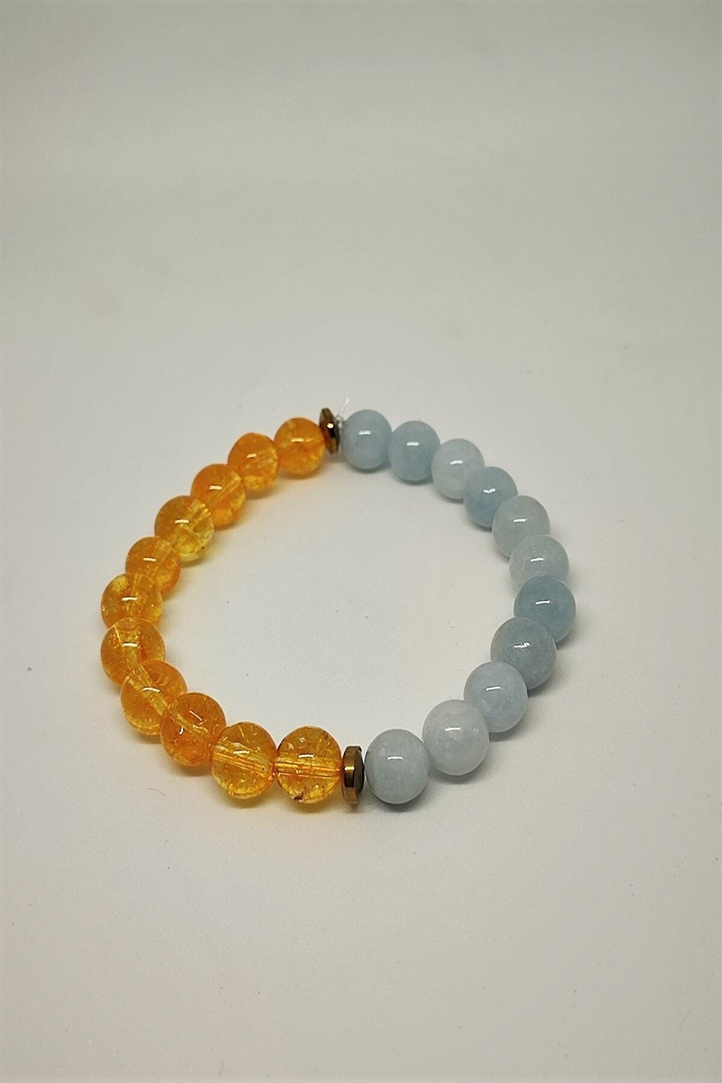 - Doğal taş kullanımı, her bir bilekliğin benzersiz ve otantik bir görünüm kazanmasını sağlar; - Sertifikalı 8 mm sitrin, akuamarin ve hematit doğaltaşları, bilekliğe zarif bir parlaklık ve renk çeşitliliği katar; - Bu bileklik, hem günlük kullanım hem de özel günler için ideal bir aksesuar seçeneği sunar;