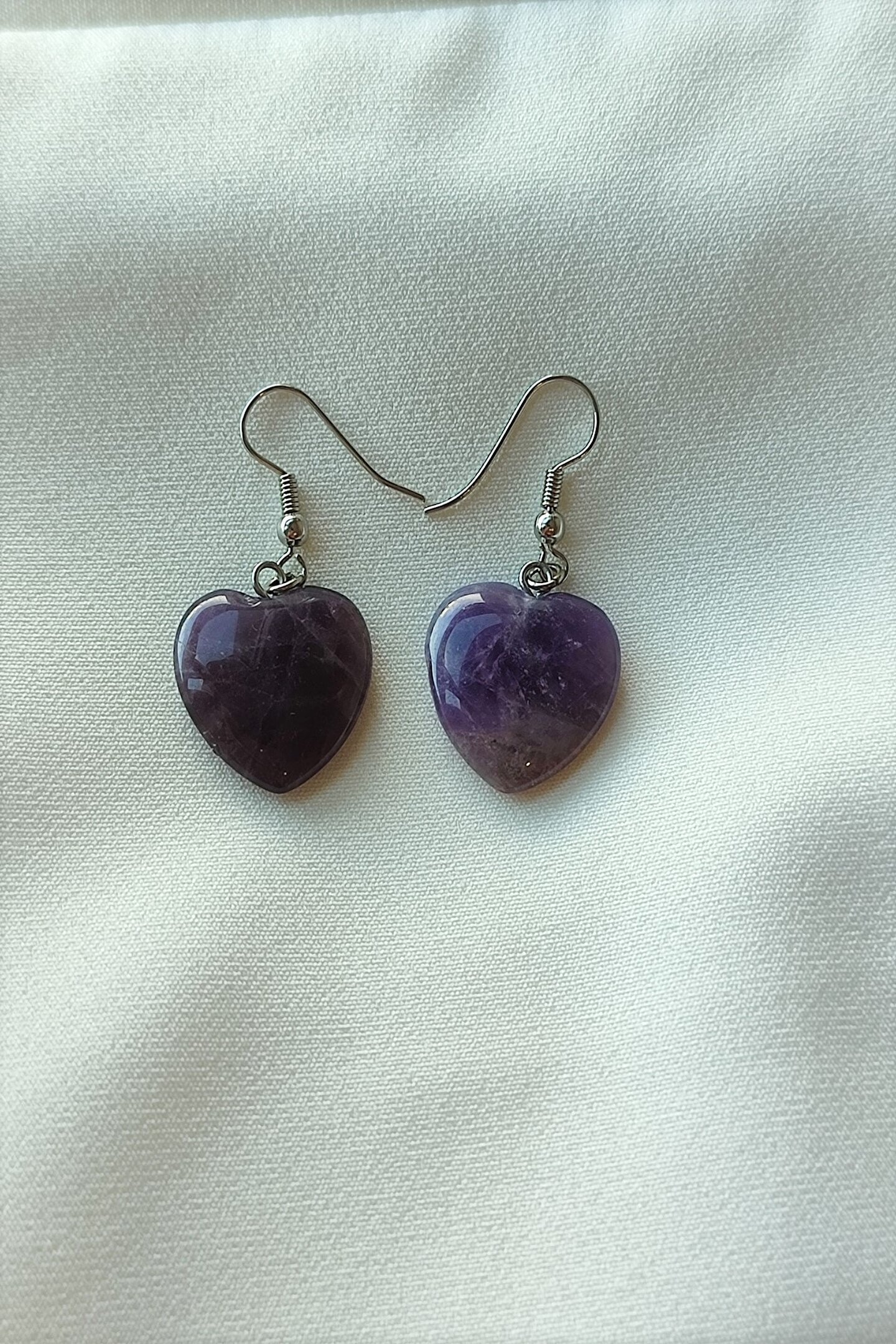badeaccessories Sertifikalı Ametist Kalp Doğaltaş Küpe