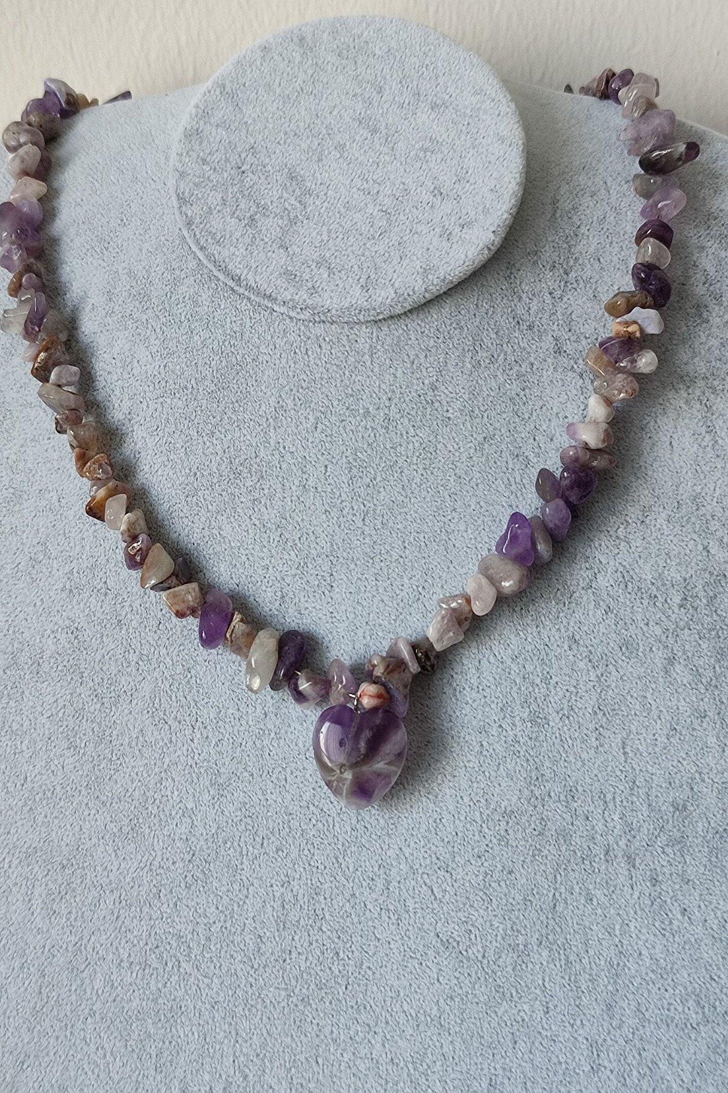 badeaccessories Sertifikalı Ametist Kırıktaş Doğaltaş Kalp Kolye