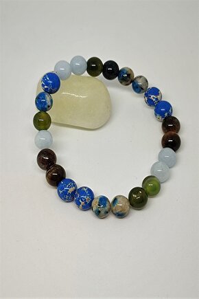 badeaccessories Sertifikalı Balık Burcu Erkek Doğaltaş Bileklik (akuamarin, Akik, Varasit, Dumortireit Kaplangözü )
