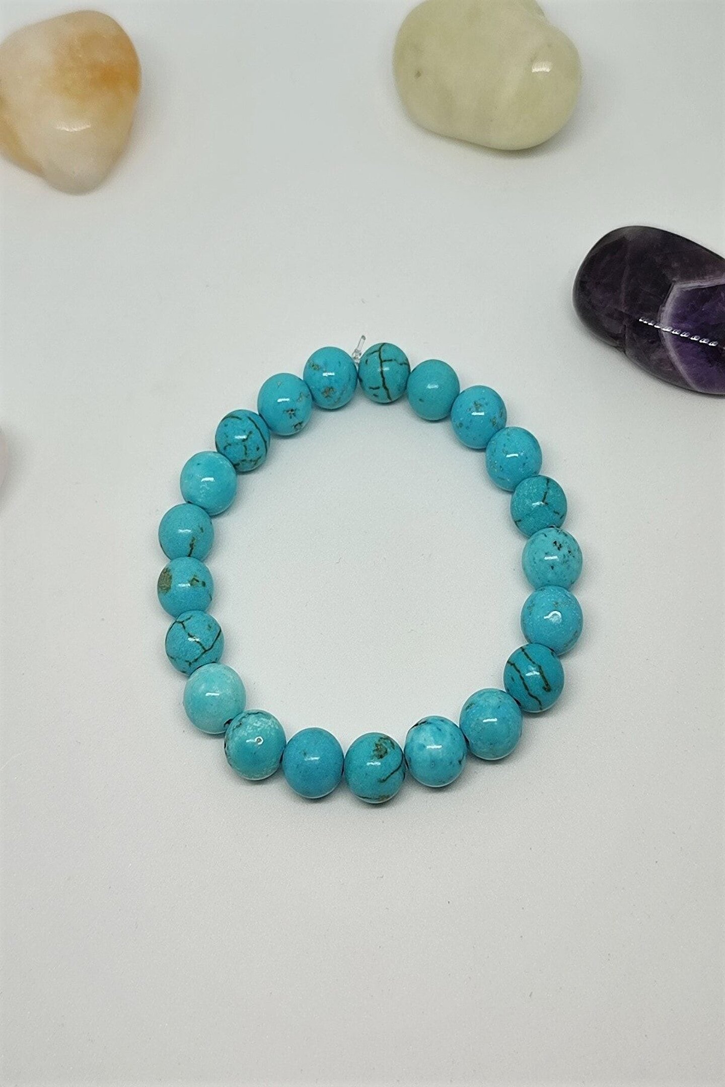 Doğal turkuaz firuze taşı ile tasarlanmış, her bir bileklik benzersiz ve özgün bir görünüm sunar; Sertifikalı gerçek taş kullanımı, ürünün kalitesini ve orijinalliğini garanti eder; Bijuteri bileklik, zarif tasarımıyla günlük kullanım için idealdir ve şıklığınızı tamamlar; Doğal taşların eşsiz renk ve desenleri, her kıyafetle uyum sağlayarak stilinizi öne çıkarır;