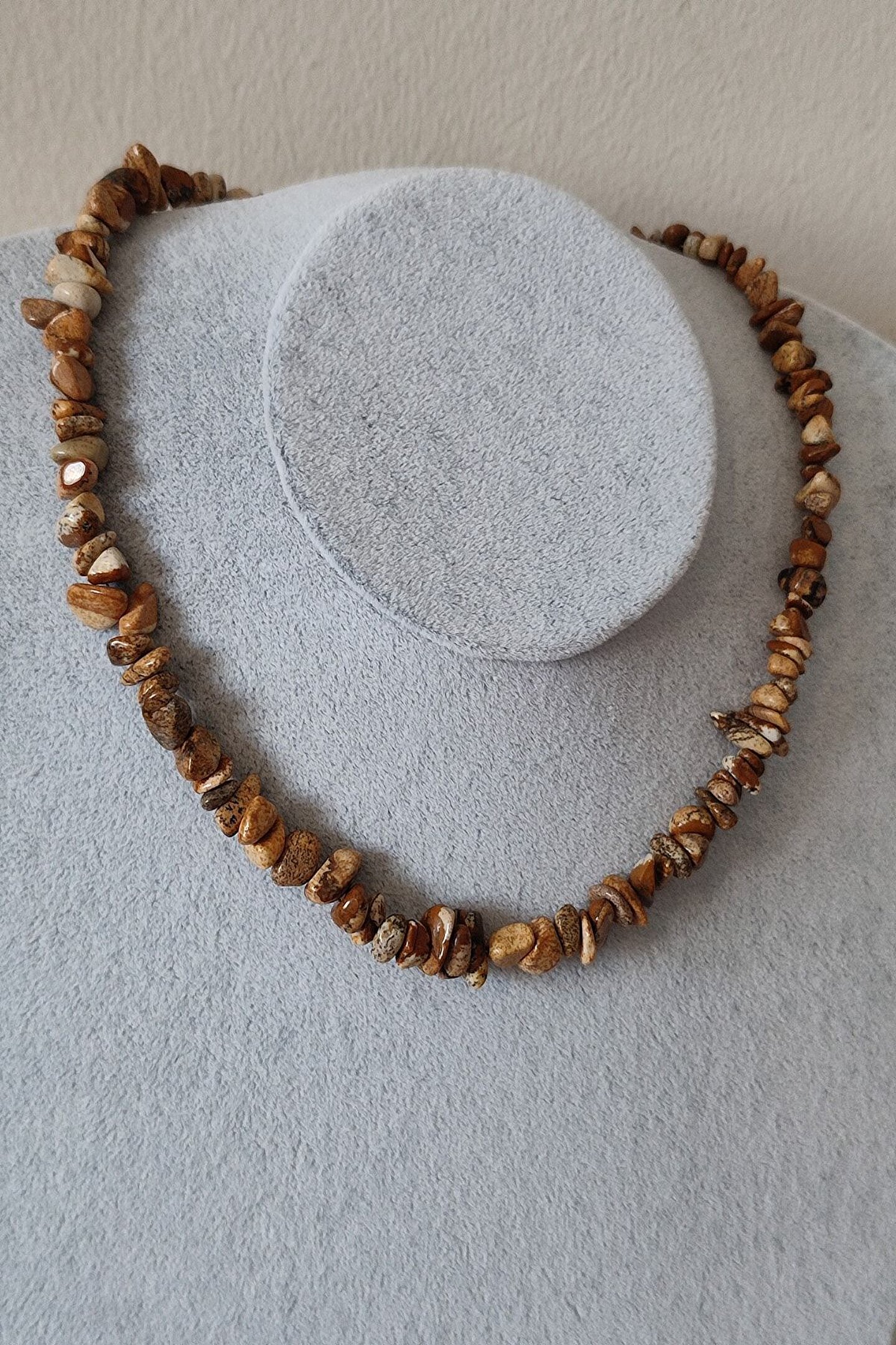 Doğal taş kullanımı, her bir kolyenin benzersiz ve otantik bir görünüm kazanmasını sağlar; Sertifikalı jasper kırıktaş doğaltaş, dayanıklılığı ve estetik değeri ile öne çıkar; Bu kolye, hem günlük kullanım hem de özel günler için ideal bir aksesuar seçeneği sunar;