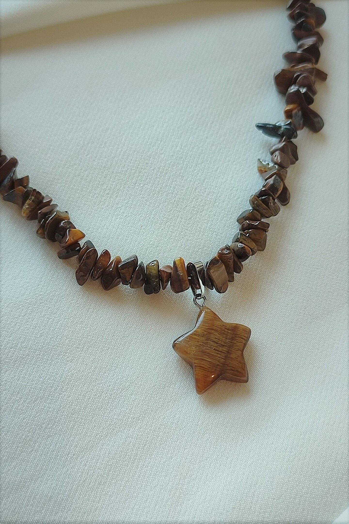 Doğal taş kullanımı sayesinde her kolye benzersiz ve otantik bir görünüm sunar; Sertifikalı kaplangözü yıldız kırıktaş doğaltaş, hem şıklığı hem de doğallığı bir arada barındırır; Taş materyali ile uzun ömürlü kullanım ve dayanıklılık sağlar;