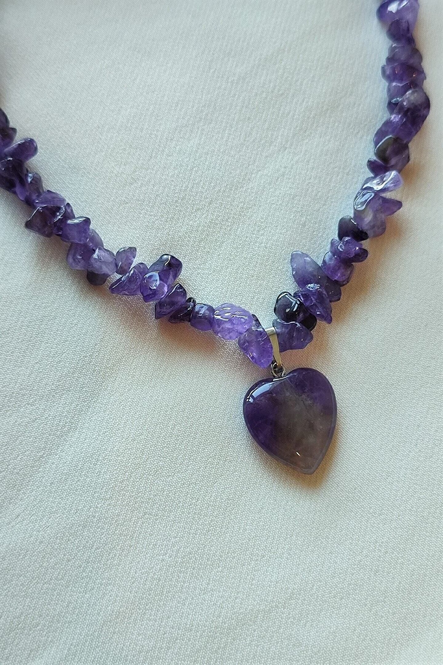 - Doğal taş kullanımı sayesinde her kolye benzersiz ve otantik bir görünüm sunar; - Koyu ametist taşı, şıklığı ve zarafeti bir arada barındırarak her kıyafetle uyum sağlar; - Kalp kırıktaş doğaltaş, hem estetik hem de sembolik bir anlam taşır; sevgiyi ve kırılganlığı temsil eder;