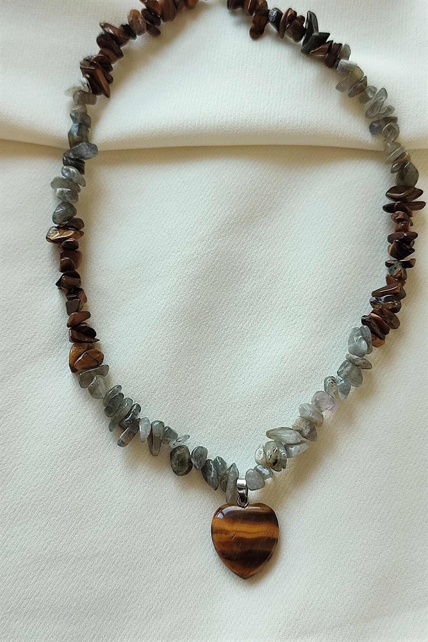 badeaccessories Sertifikalı Labradorit, Kaplangözü Kalp Doğaltaş Kolye
