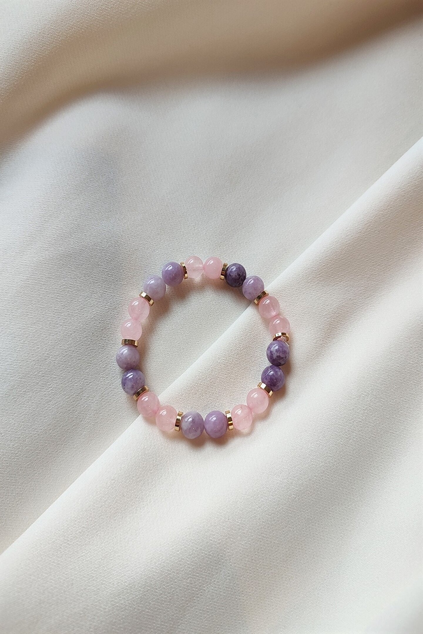 badeaccessories Sertifikalı Lepidolit, Pembe Kuvars Doğaltaş Bileklik