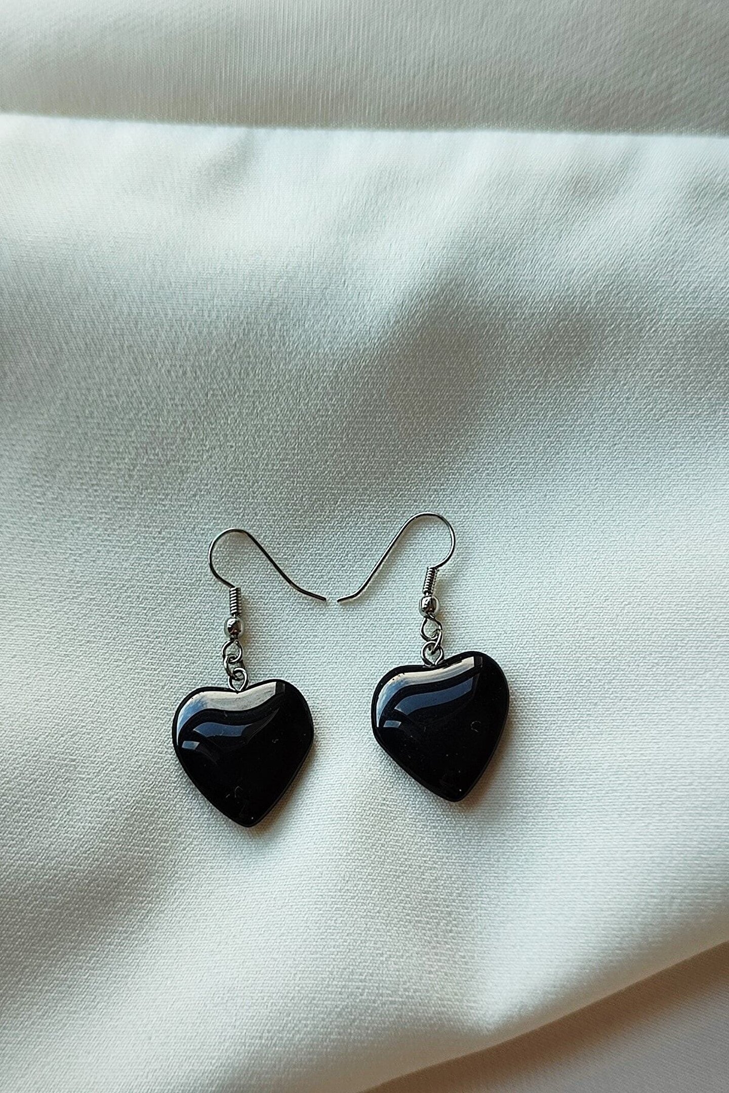 badeaccessories Sertifikalı Oniks Kalp Doğaltaş Küpe