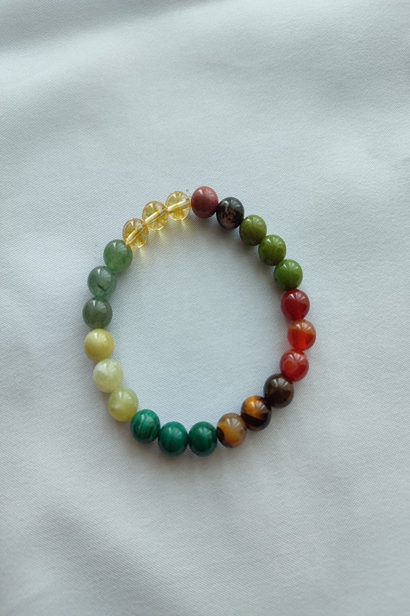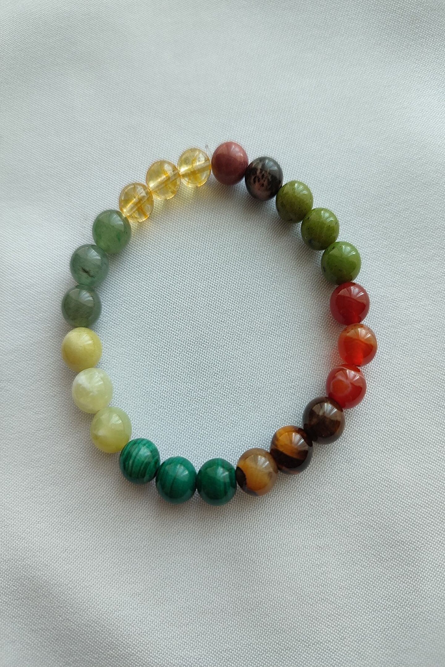 Doğal taşların eşsiz güzelliğini bileğinizde hissedin: Sertifikalı sitrin, aventurin, zebercet, malahit, kaplan gözü, akik ve yeşim gibi değerli taşlardan oluşan bu bileklik, doğanın zarafetini ve gücünü stilinize taşır; Her bir bileklik, benzersiz bir dokunuşla tasarlanmıştır; her taşın kendine özgü renk ve deseniyle dikkat çekerken, bileğinizde doğal bir şıklık yaratır; Doğal taş materyali sayesinde her bileklik, el yapımı ve özgün bir aksesuar deneyimi sunar; hem günlük kullanım hem de özel günler için idealdir; Bu bileklik, sadece bir aksesuar değil; aynı zamanda enerji taşı olarak da bilinir ve pozitif enerjilerle dolu bir gün geçirmenize yardımcı olabilir;