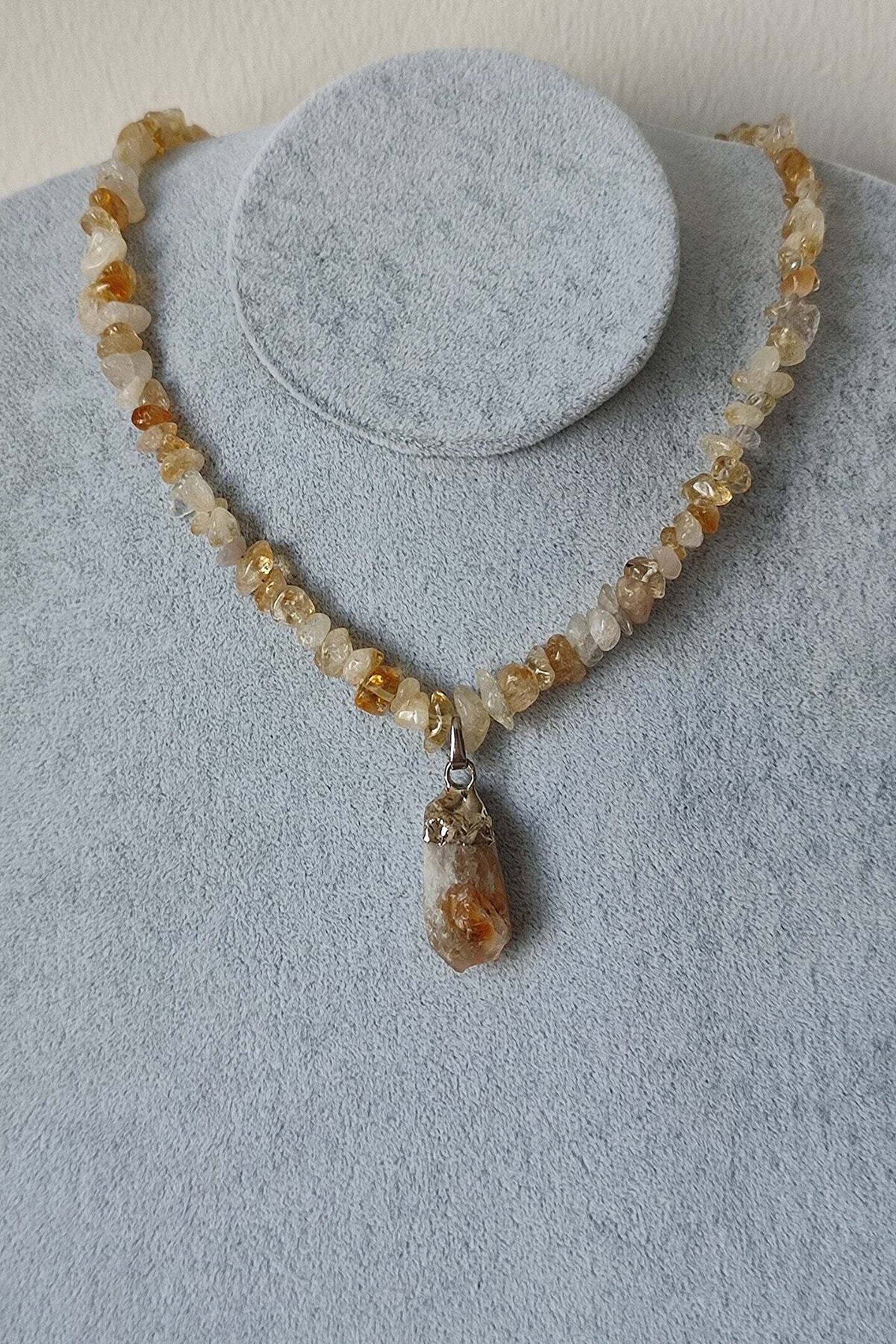 Doğal sitrin taşının eşsiz güzelliğini yansıtan, her biri el işçiliği ile özenle seçilmiş kırıktaş parçalardan oluşan bu kolye, zarifliği ve doğallığı bir arada sunar; Sertifikalı sitrin taş kullanımı sayesinde, hem estetik hem de kalite açısından yüksek standartlarda bir aksesuar deneyimi yaşatır; Taş materyalinin dayanıklılığı ve parlaklığı, uzun süreli kullanım için idealdir ve her türlü özel gününüzde şıklığınızı tamamlar;