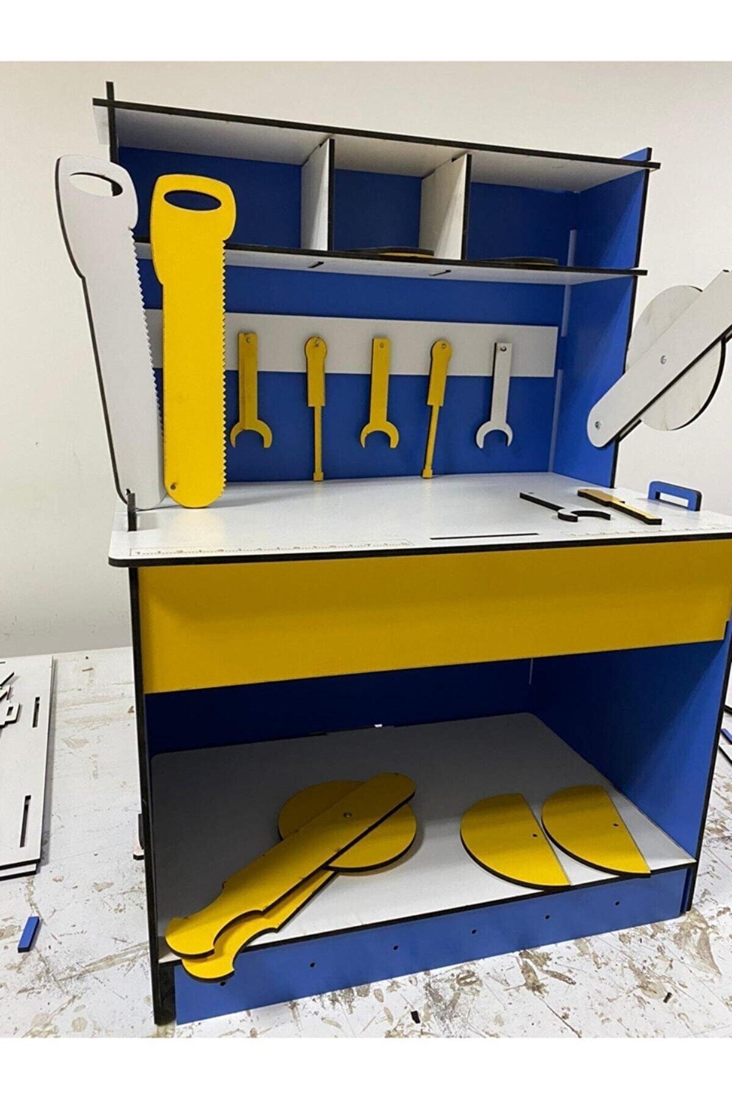 6mm 1. Sınıf MDF'den üretilmiştir. ; Yükseklik 90 cm, Genişlik 70 cm'dir. ; Doğum günü hediyesi olarak tercih edilen ürünler arasındadır. Evcilik oyuncakları , eğitici oyuncaklar, erkek çocuk oyuncaklarıarasında oldukça talep gören bir oyuncaktır. ; Montessori etkinlikleri ne uygun olarak tasarlanmıştır, çocukların hayal gücünü ve motor becerilerini geliştirir. ; Mavi, Sarı, Turuncu, Yeşil, Siyah, Kırmızı, Ceviz, Akça renk seçenekleri vardır, sipariş verdikten sonra tercih ettiğiniz rengi belirtebilirsiniz, belirtilmezse görseldeki ürün gönderilecektir. ;
