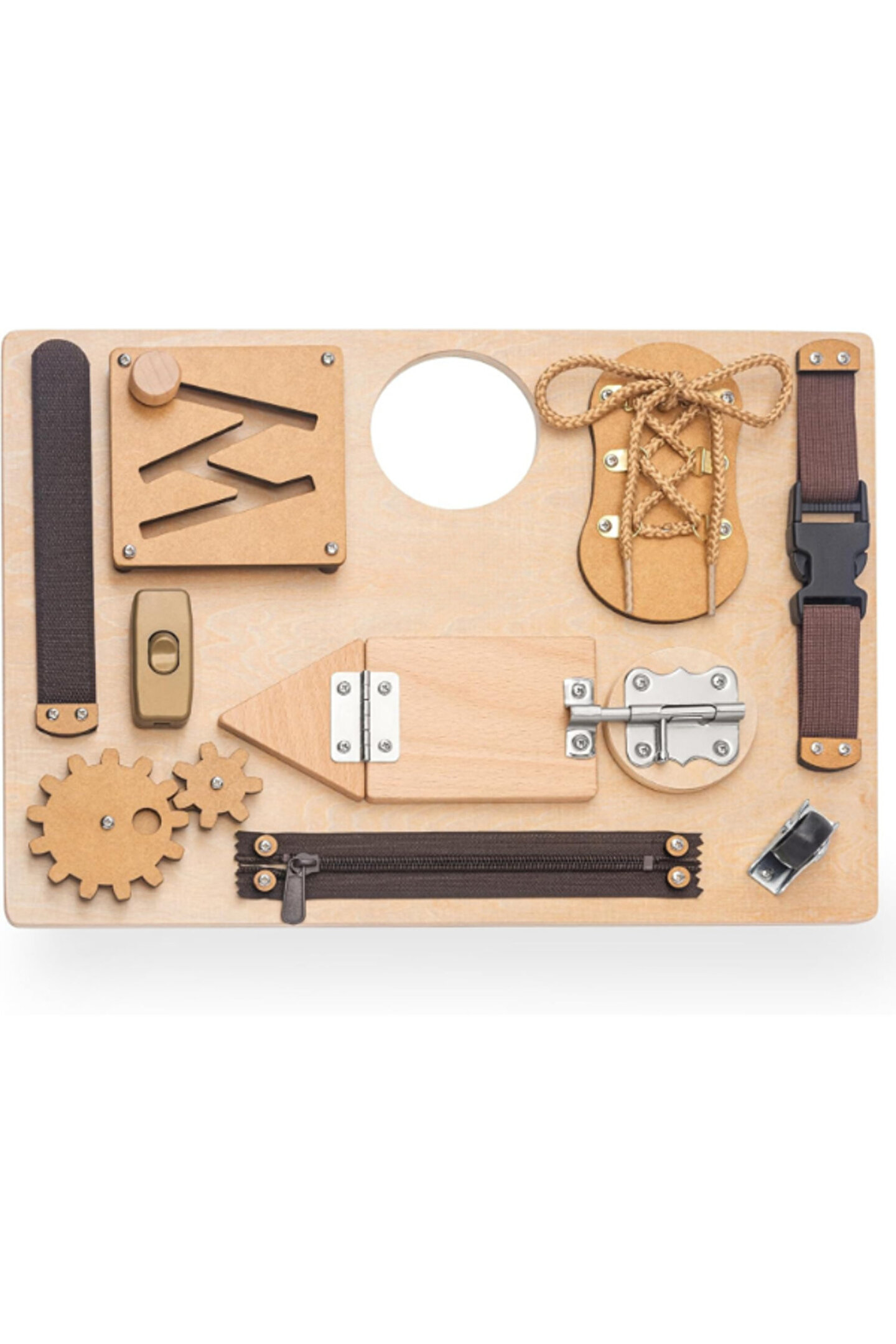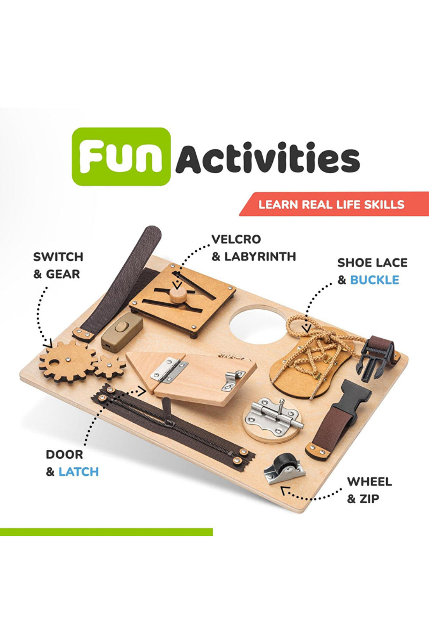 【Ahşap meşguliyet tahtası】 3 yaş için eğitici oyuncaklar ve yürümeye başlayan çocuklar için Montessori oyuncakları. 10 okul öncesi aktiviteye sahip duyusal yürümeye başlayan çocuk meşguliyet tahtası oyuncağı, çocukların ince motor becerilerini geliştirmelerine yardımcı olur.
