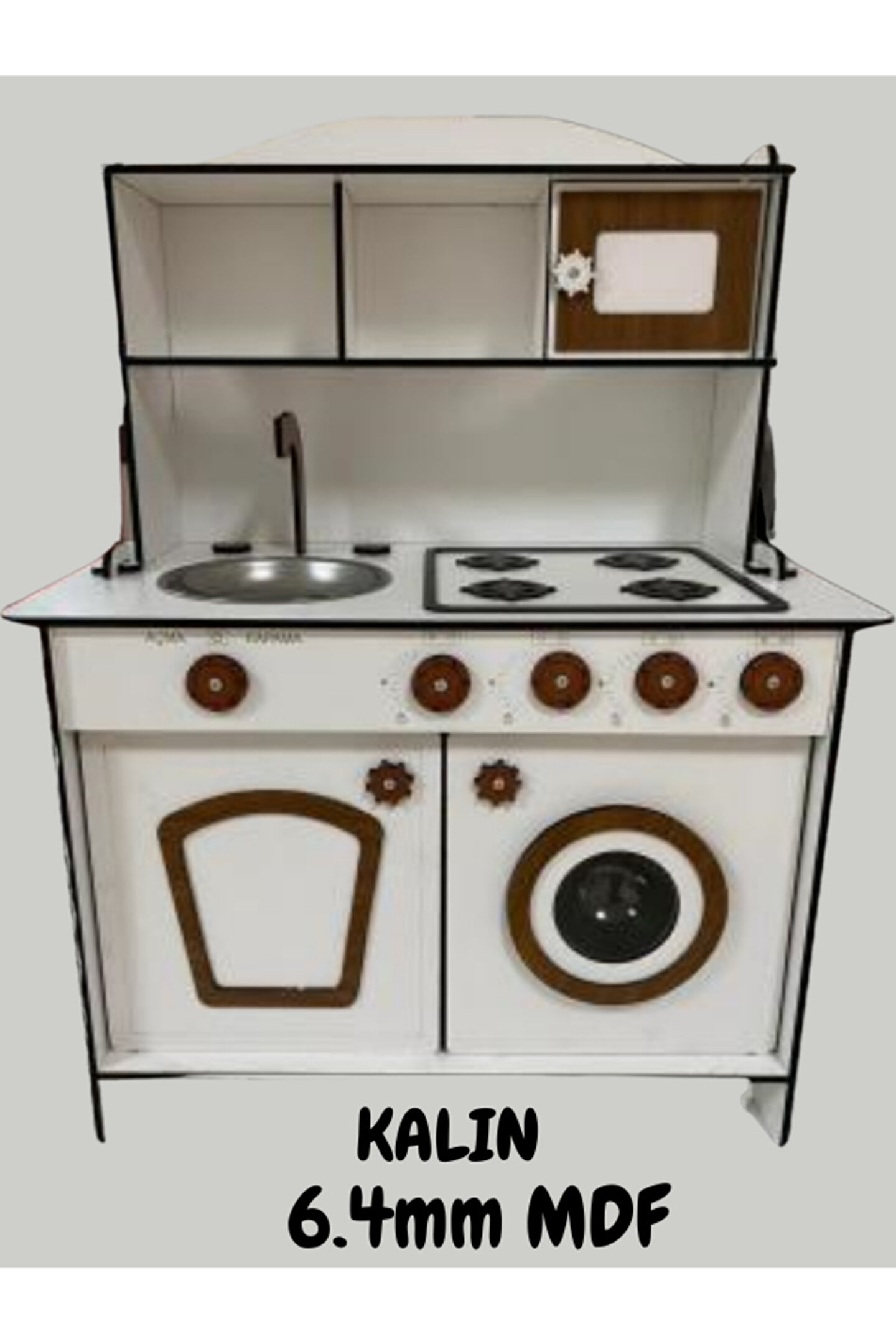 ? Pembe kaplamalı 6mm MDFLAMmalzemeden el yapımı. ?Yükseklik 80cm, genişlik 60cm. 3 yaş ve üstü çocuklar için saatlerce yaratıcı oyun sağlamak üzere tasarlanmıştır. ; Ocak, lavabo, musluk, çamaşır makinesi ve kapılı depo rafları ile birlikte gelir. ; Gerekli tüm parçaları içerir: Vidalar, mandallar ve kulplar. ; Dayanıklı yapısı uzun ömürlü kullanım sağlar. ; Düğmeler, kadranlar ve musluklar gibi gerçekçi detaylar. ; Gerçekçi pişirme deneyimi için set üstü ocakta dört brülör vardır. ; Çamaşır makinası menteşelidir ve gerçek bir makina gibi açılabilir. ; Tüm donanımlarıyla interaktif bir ortam yaratır. ; Güvenlik standartlarına uygun, toksik olmayan malzemelerden üretilmiştir. ; Oyuncak mutfak yaratıcılığı teşvik eder ve motor becerilerini geliştirir. ; Herhangi bir odaya veya köşeye sığacak mükemmel boyut. ; Çocuğunuz yemek pişiriyor, bulaşık yıkıyor, yemek hazırlıyor ve misafirlere servis yapıyormuş gibi davranarak saatlerce eğlenecek. ; Herhangi bir kreş veya oyun odasına mükemmel bir katkı ve doğum günleri, noel veya diğer özel günler için harika bir hediye fikridir. ; Doğum günü hediyesi olarak tercih edilen ürünler arasındadır. Evcilik oyuncakları, oyuncak mutfak setleri, eğitici oyuncaklar, kız çocuk oyuncakları alanında tercih edildiği gibi erkek çocuklar içinde oldukça talep gören bir oyuncaktır. ; ;