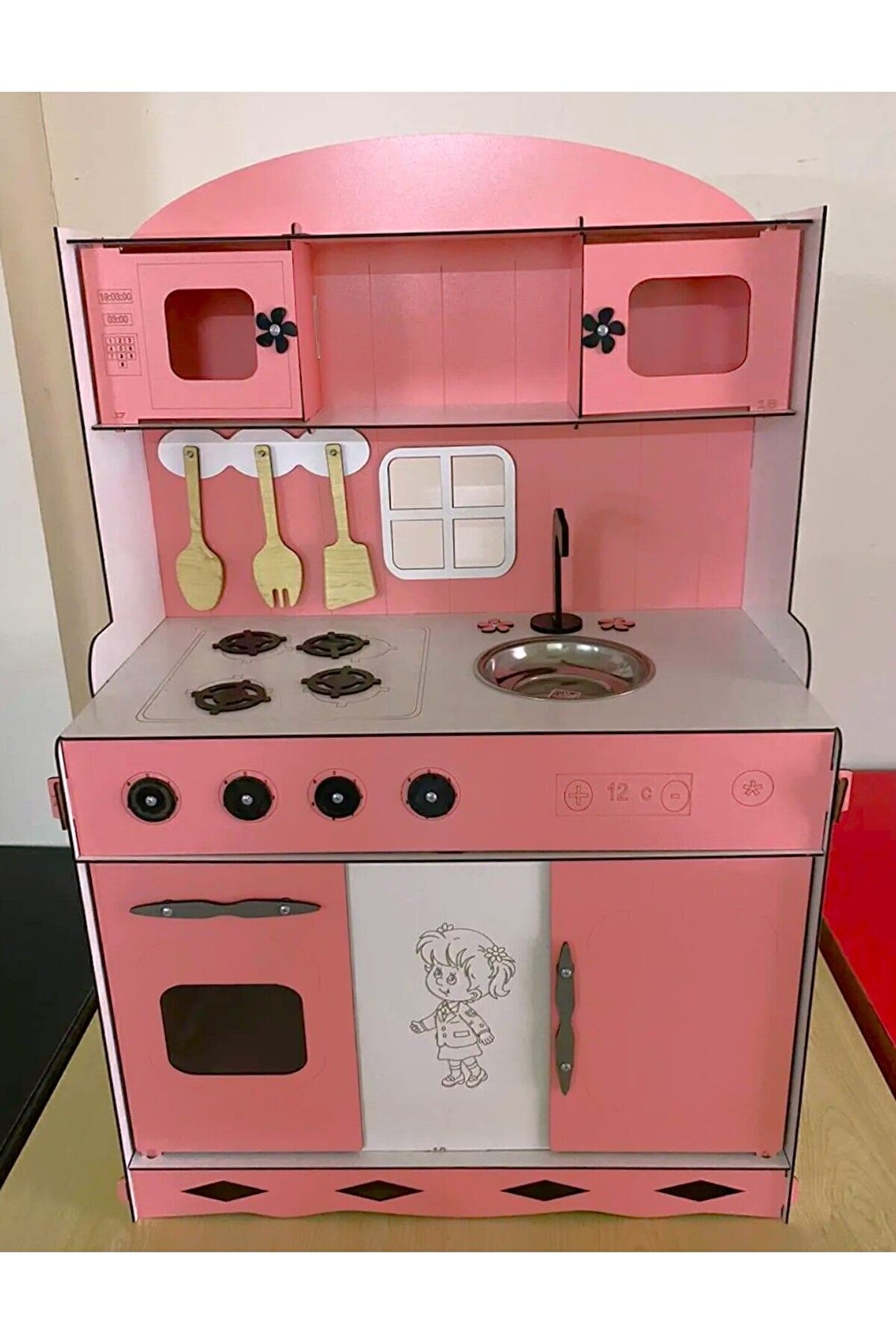 Bu ahşap oyuncak mutfak ile küçük çocuğunuza en iyitaklit oyunu deneyimini yaşatın. Modern pembe tasarımı ve 3 mm ergonomik yapısıyla bu oyuncak mutfak, saatlerce sürecek yaratıcı eğlence içinmükemmeldir. Bir çamaşır makinası, set üstü ocak, lavabo ve musluk ile birliktegelir, böylece çocuğunuzun hayal gücünün çalışmasına olanak sağlar! Birlikteverilen aksesuarlar yaratıcı oyun için sonsuz olanaklar yaratırken, pürüzsüz yuvarlatılmışköşeler güvenliği sağlar. 3mm MDFLAM malzemeden el yapımı. Yükseklik 90cm. Genişlik 60cm. Derinlik 40cm. ; 3 yaş ve üstü çocuklar için saatlerce yaratıcı oyun sağlamak üzere tasarlanmıştır. ; Ocak, lavabo, musluk, çamaşır makinesi ve kapılı depo rafları ile birlikte gelir. ; Gerekli tüm parçaları içerir: Vidalar, mandallar ve kulplar. ; Dayanıklı yapısı uzun ömürlü kullanım sağlar. ; Düğmeler, kadranlar ve musluklar gibi gerçekçi detaylar. ; Gerçekçi pişirme deneyimi için set üstü ocakta dört brülör vardır. ; Çamaşır makinası menteşelidir ve gerçek bir makina gibi açılabilir. ; Tüm donanımlarıyla interaktif bir ortam yaratır. ; Güvenlik standartlarına uygun, toksik olmayan malzemelerden üretilmiştir. ; Oyuncak mutfak yaratıcılığı teşvik eder ve motor becerilerini geliştirir. ; Herhangi bir odaya veya köşeye sığacak mükemmel boyut. ; Çocuğunuz yemek pişiriyor, bulaşık yıkıyor, yemek hazırlıyor ve misafirlere servis yapıyormuş gibi davranarak saatlerce eğlenecek. ; Herhangi bir kreş veya oyun odasına mükemmel bir katkı ve doğum günleri, Noel veya diğer özel günler için harika bir hediye fikridir. ; Doğum günü hediyesi olarak tercih edilen ürünler arasındadır. Evcilik oyuncakları, oyuncak mutfak setleri, eğitici oyuncaklar, kız çocuk oyuncakları alanında tercih edildiği gibi erkek çocuklar içinde oldukça talep gören bir oyuncaktır. ; Paket içerisinde kurulum kılavuzu vardır yine de kurulum esnasında sorularınız olursa kılavuzdan ulaşabilirsiniz. ; Kargoda hasar görmemesi için özenle paketlenmektedir. ; Bu ahşap oyuncak mutfak ile çocuğunuzun hayal gücünü hayata geçirin! Küçükler için mükemmel boyutta olan oyuncak mutfağı, 3mm MDF tahtasından yapılmıştır ve çamaşır makinası set üstü ocak, lavabo, musluk, raflar ve dolaplar gibi eğlenceli aksesuarlarla birlikte gelir. Dönen düğmeler, açılıp kapanan kapılar gibi gerçekçi özelliklere sahiptir. Yaratıcı oyun zamanı ve rol yapma için ideal, çocuklarınıza saatlerce eğlence sunacak!