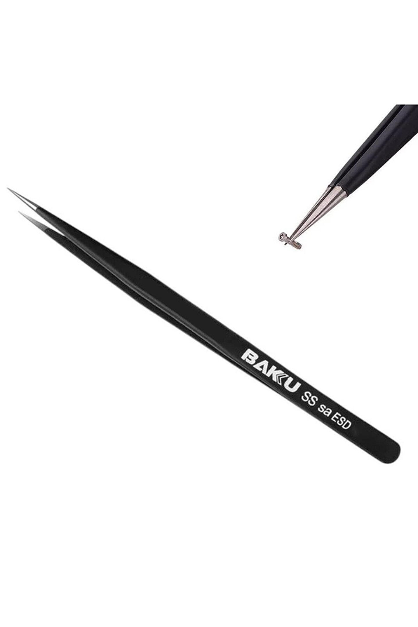 Baku BK-A8-SS-SA-ESD İnce Uzun Uçlu Cımbız; elektronik, elektrik başta olmak üzere pek çok sektörde, hassas tutma işlemlerini kolayca yapmanızı sağlar. Vidaları ve diğer küçük bileşenleri toplamak ve işlemek içinde ideal olan BK-A8-SS-SA-ESD paslanmaz çelik malzemeden üretilmiştir. Kullanımı kolaylaştıran açılı, kavisli keskin uçları ile kolay ve rahat kullanım imkanı sunar.