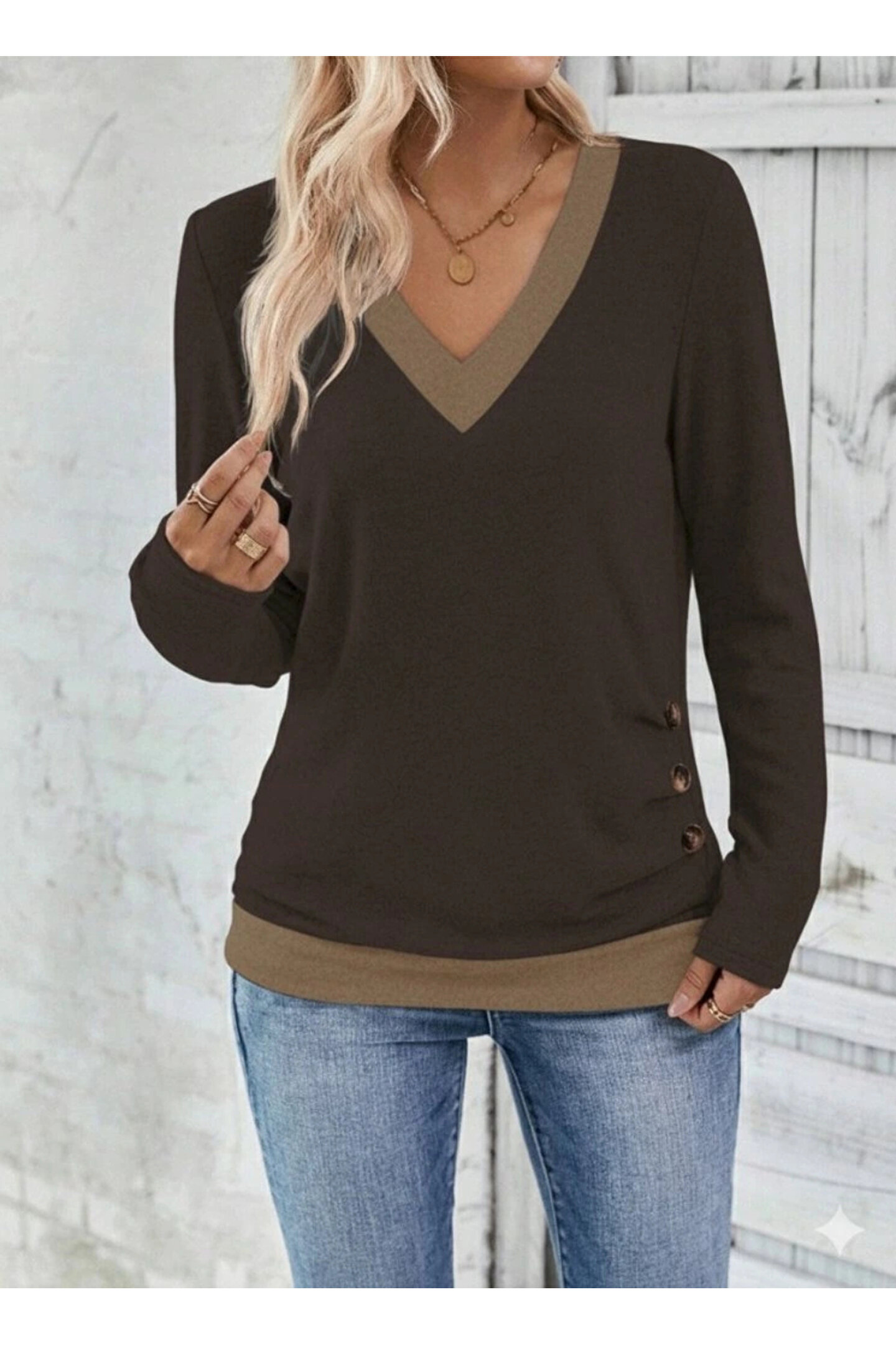 BALCI Kadın Uzun Kollu V Yakalı Yandan Düğmeli Yün Viskon Bluz