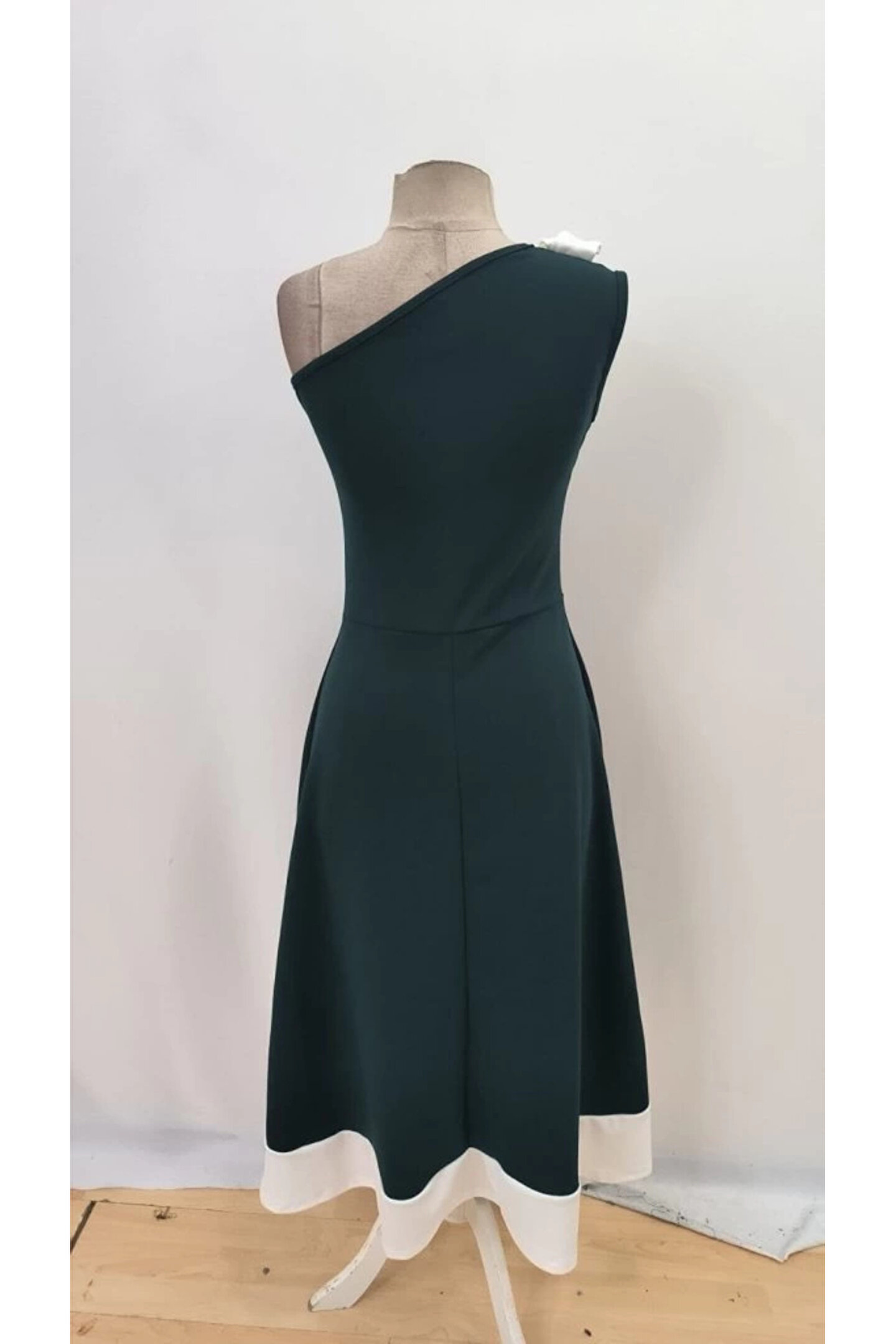 BALCI MDB Kadın Tek Omuzu Açık Omuzlardan Kurdela Detaylı çift Renkli Ithal Krep Elbise