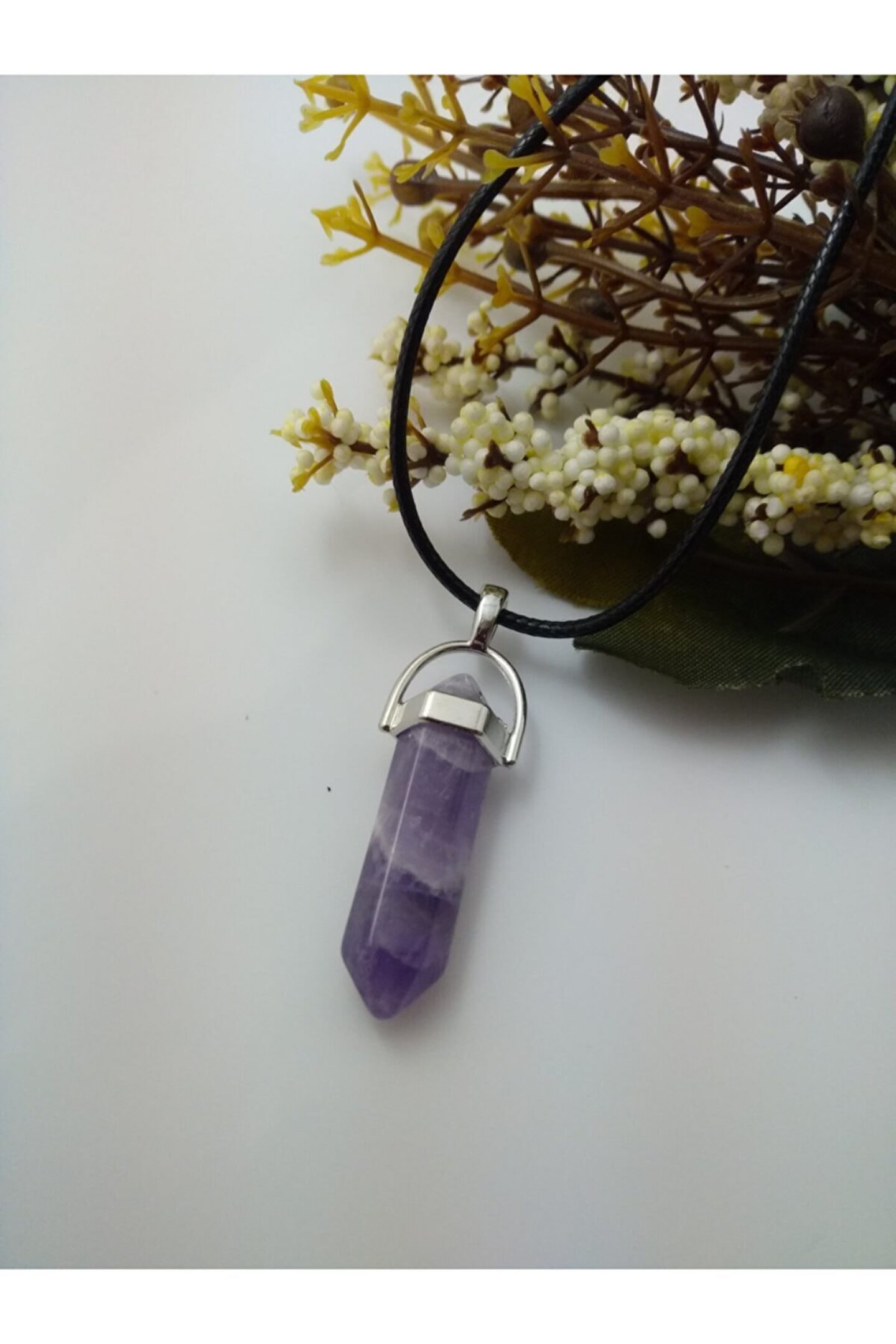 BalıkHediyelik Ametist Taşı Kolye Çivi Şeklinde Doğaltaş Kolye