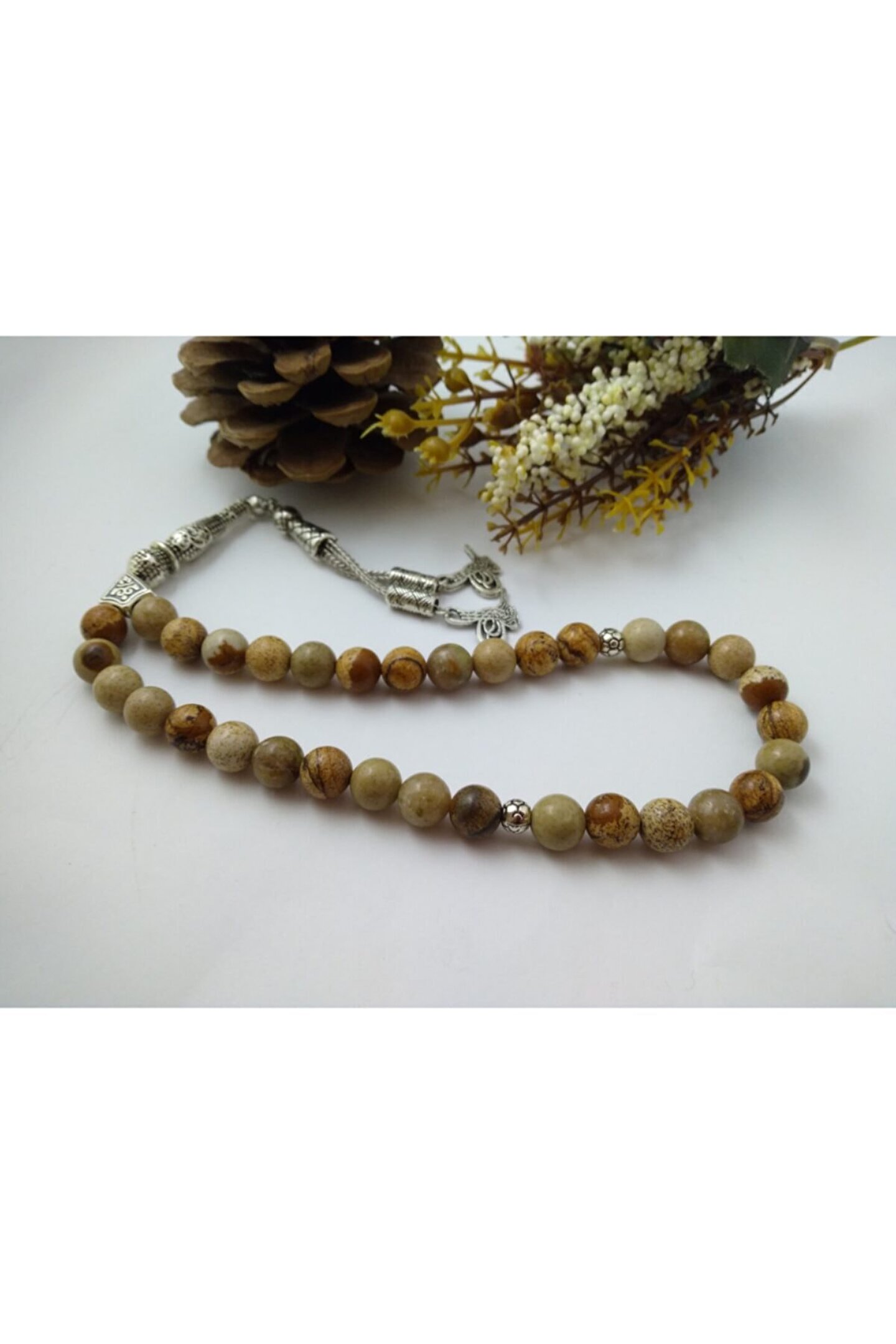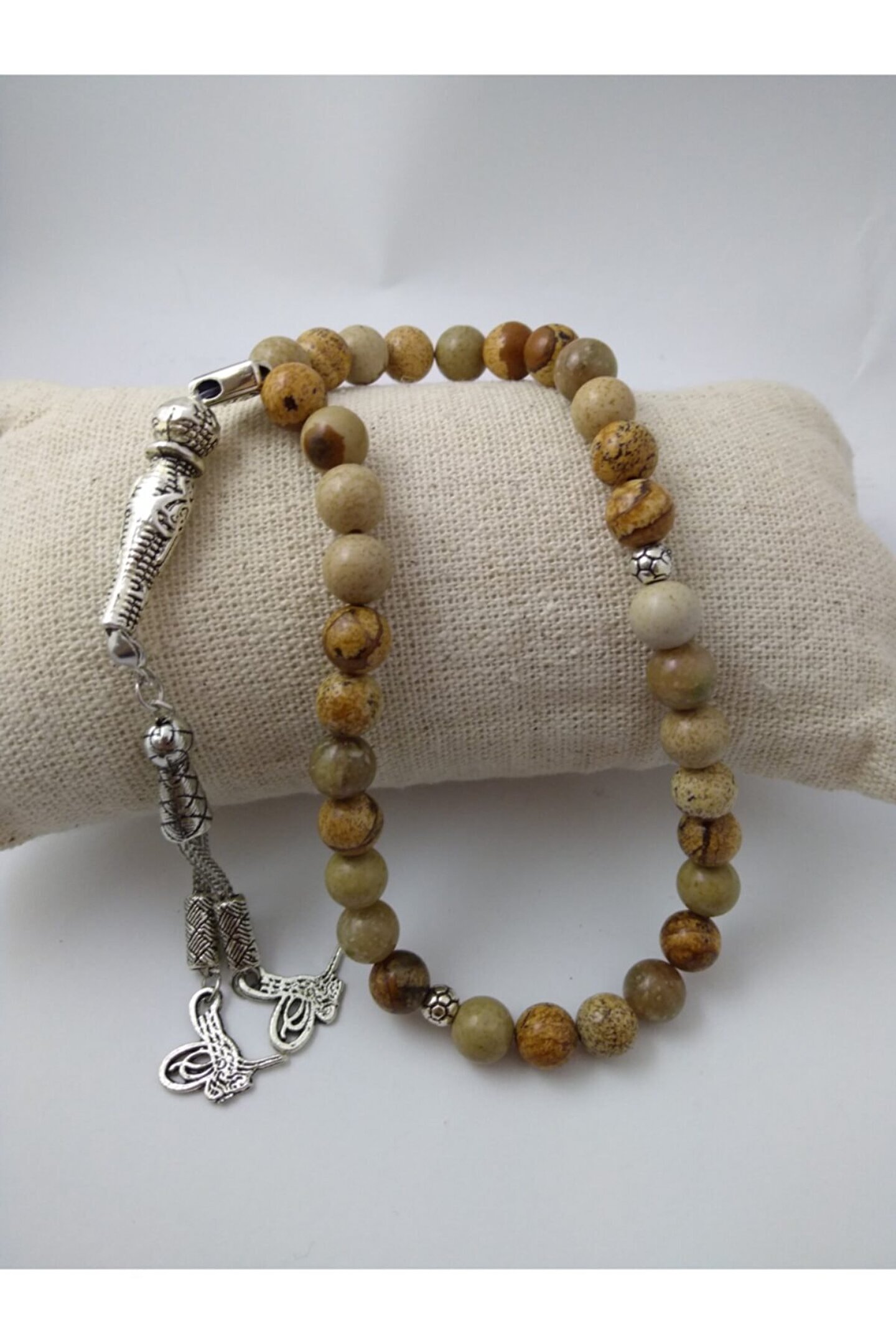 Jasper taşı tespih / doğaltaş tespih Jasper (yaşam gücü taşı):Halk arasında çakmak taşı olarak bilinen jasper taşı renkli ve damarlı bir taştır. ; Başlıca renkleri kırmızı, sarı ,yeşil,mavi, turuncu ve kahverengi tonlardan karışık damarlı bir taştır. ; Dalmaçyalı modelide mevcuttur. ; Sigarayı bırakmak isteyenler bu taşı tercih edebilirler. ; Azim ve cesaret taşıdır. ; Sinirleri yumuşatır. ; Kan yapımıma yardım eder. ; Bedendeki zararlı toksinlerin temizlenmesinde etkili olduğu, bağışıklık sistemini güçlendirdiği bilinir.Doğurganlığı arttırdığı ve vücuttaki toksinleri yok ettiği bilinmektedir. ; **bu eşsiz özelliklere sahip doğaltaş tespih neden sizin veya sevdiklerinizin olmasın..**;
