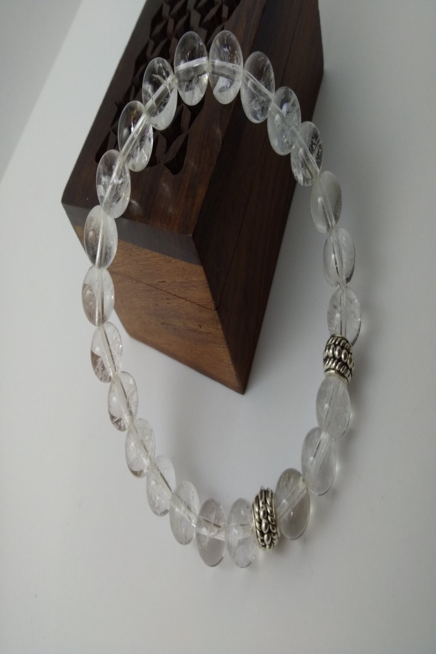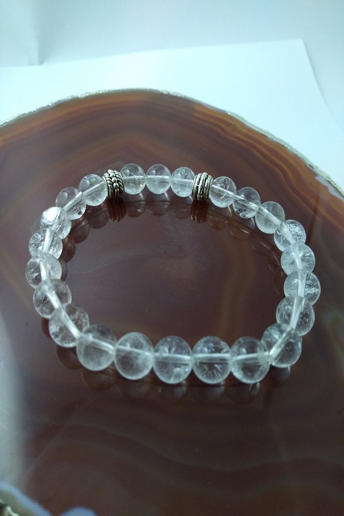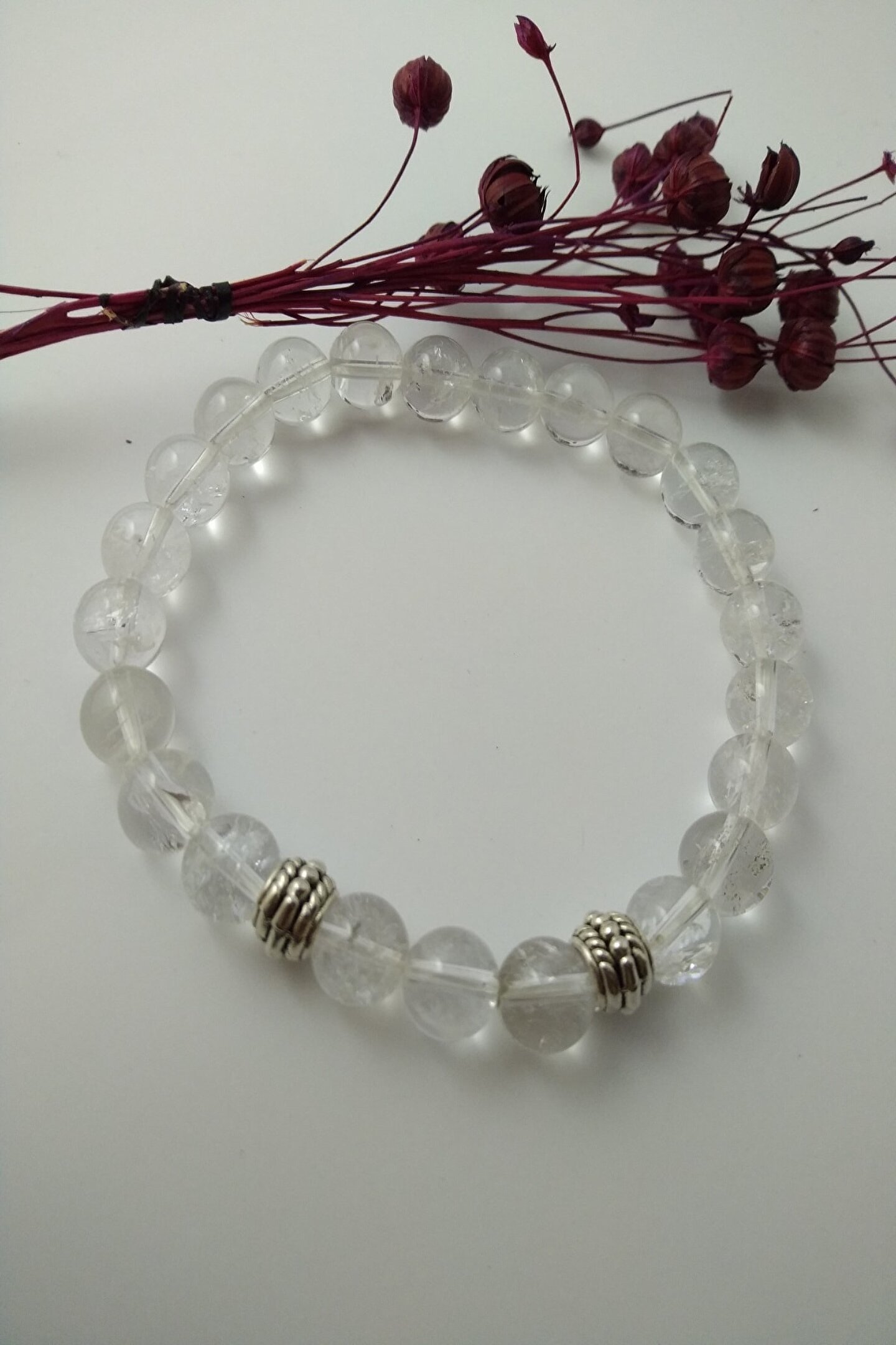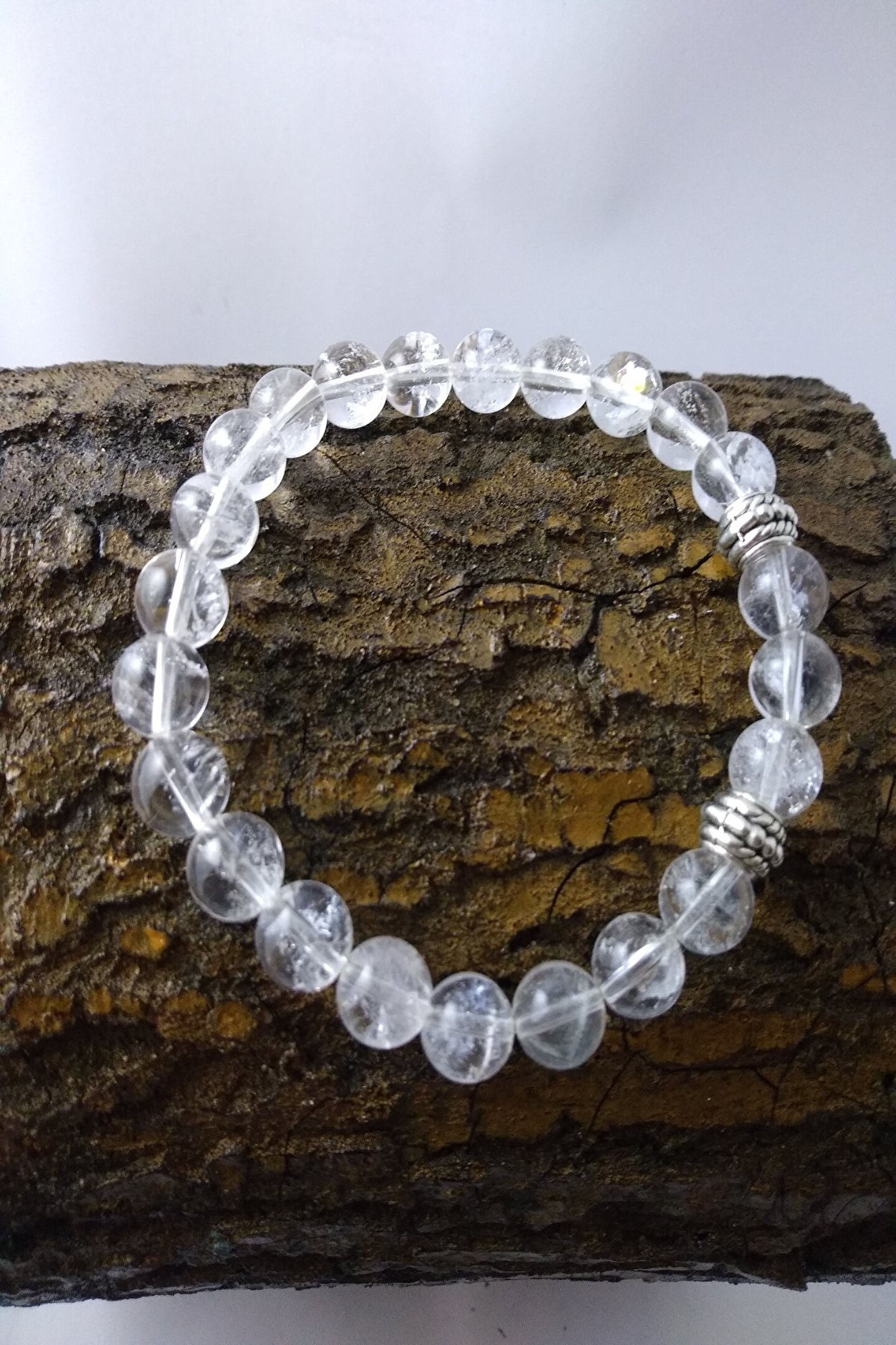KRİSTAL KUVARS TAŞI BİLEKLİK / DOĞALTAŞ UNİSEX BİLEKLİK KRİSTAL KUVARS TAŞI (Pozitif Enerji Taşı): Doğal taşların iyileştirici gücüne inananların gözdesi kuvars; enerjisi ile bulunduğu alanlardaki negatif enerjiyi azaltırken, cep telefonu, televizyon, bilgisayar ve akıllı cihazlar gibi teknolojik aletlerden yayılan radyasyonu da topluyor. Elektriksel özelliği sebebiyle insandaki enerji noktalarına temas ederek zihinsel ve ruhsal dengeyi sağlayan özellikleri bulunuyor. **Bu eşsiz özelliklere sahip doğaltaştan yapılmış bileklik neden sizin veya sevdiklerinizin olmasın..** Ürünün Özellikleri; Ürünlerimiz gerçek doğal taş ile hazırlanmıştır. Bedenleri Standart olup, lastikli misina ile hazırlanır. Bileklik ebatları sabit olup(17-18 cm)’dir. Yedek taş ve misina ile gönderilmektedir. Tane olarak 22-23 adet taş bulunmaktadır. Tane şekli küre kesim olup, boyu 8 mm' dir.