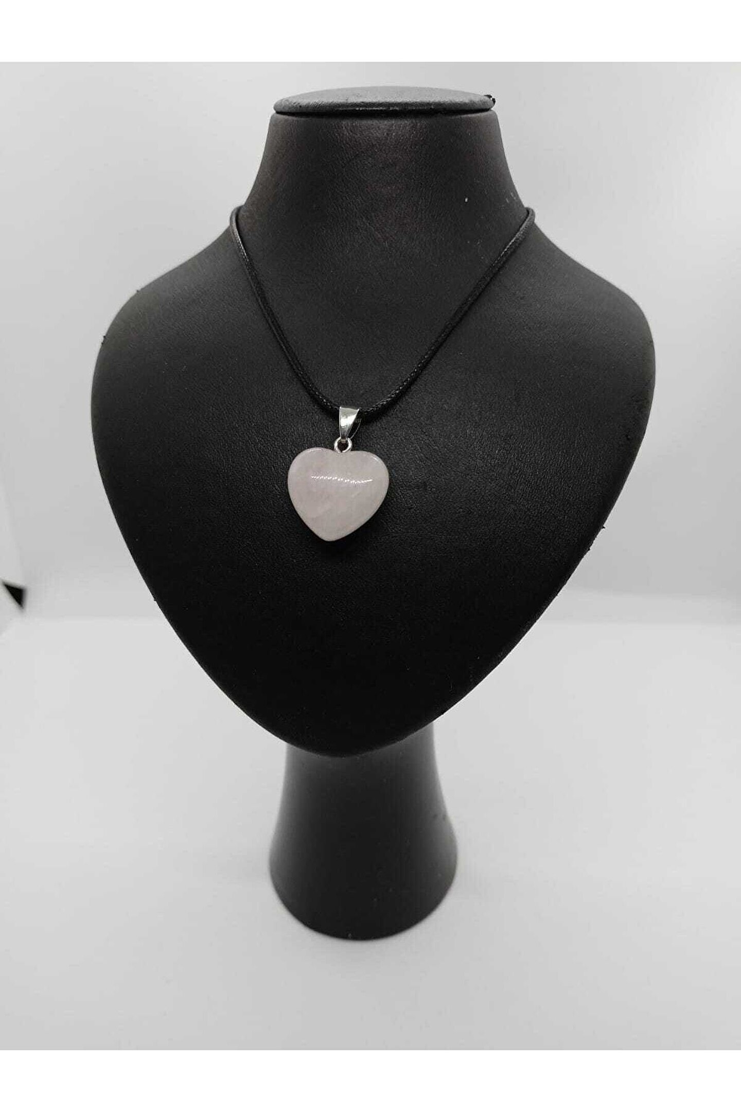 BalıkHediyelik Pembe Kuvars Taşı Kolye Kalp Şeklinde Doğaltaş Koly