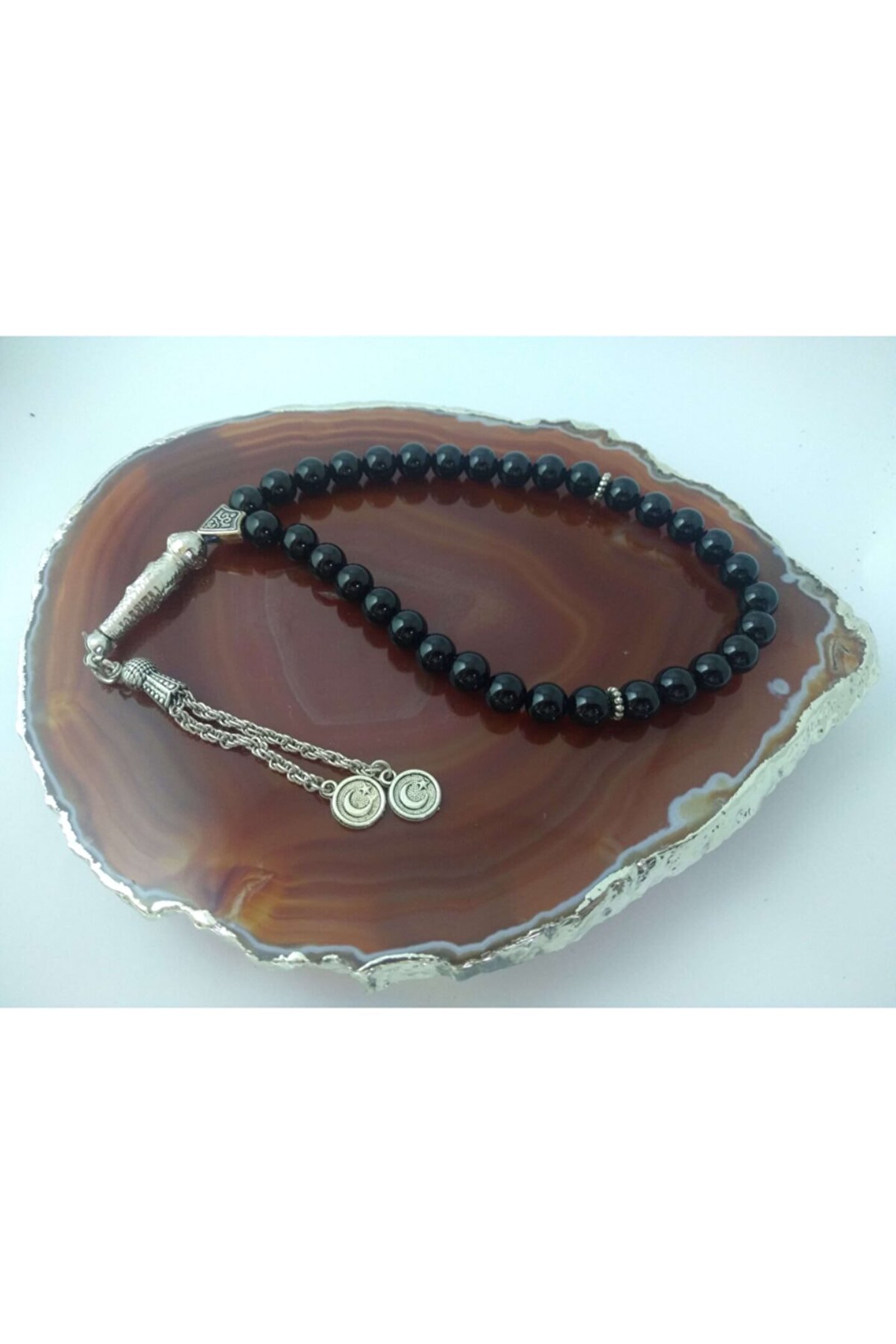 - Doğal akik taşı, stres atma ve meditasyon gibi ruhsal uygulamalar için ideal bir seçimdir; - Gümüş kaplama detayları ile zenginleştirilmiş tasarım, şıklığı ve zarafeti bir arada sunar; - Tespih, hem günlük kullanım hem de özel günlerde hediye olarak tercih edilebilir;