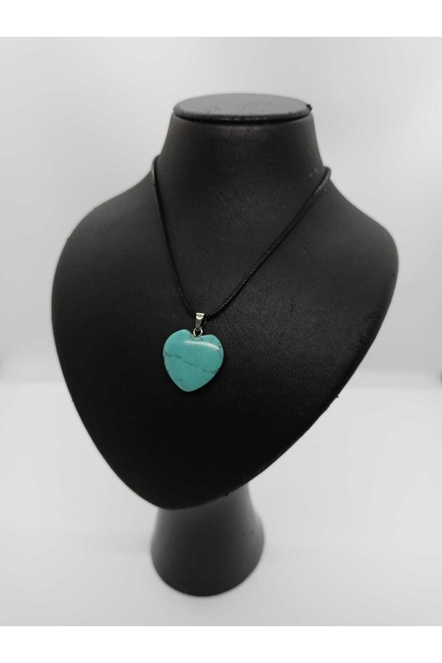 BalıkHediyelik Turkuaz (firuze) Taşı Kolye Kalp Şeklinde Doğaltaş Kolye