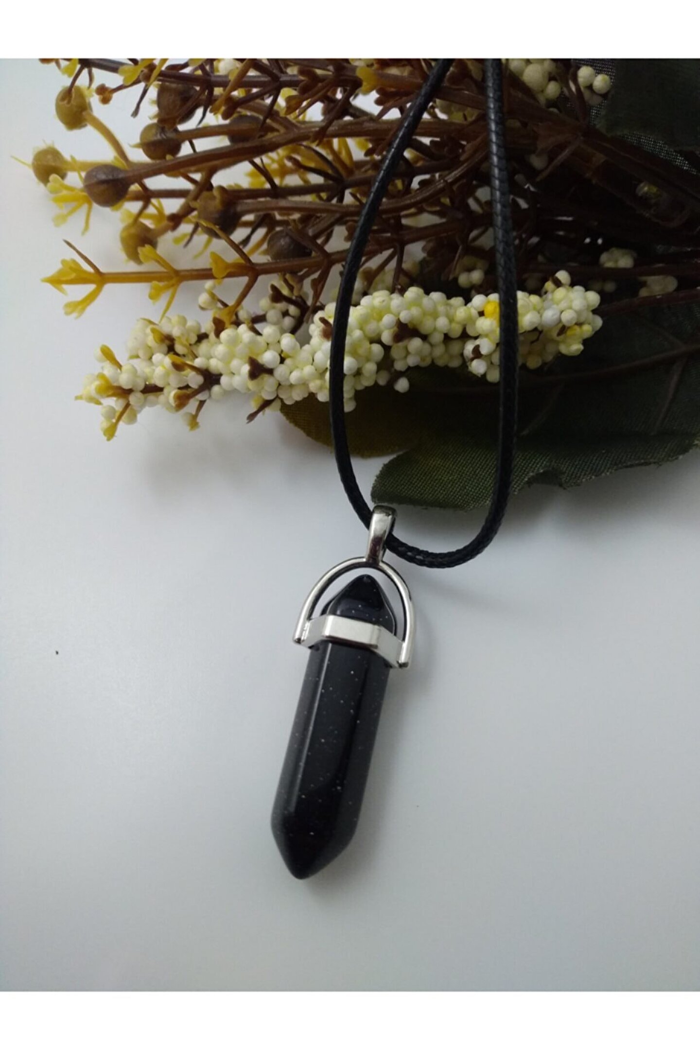 YILDIZ TAŞI KOLYE/ ÇİVİ ŞEKLİNDE DOĞALTAŞ KOLYE YILDIZ TAŞI(Aşk ve Neşe Taşı): Yıldız taşının faydalarından en bilineni kişinin açık yürekliliğini sembolize eder.Hayal taşı olarak da bilinir. Enerji gücü çok yüksek bir taştır. Sert görünümlü insanların görünüşleri ve duygularında yumuşama sağladığı bilinmektedir. Kişiye neşe, mutluluk, huzur ve yaşama sevinci verdiğine inanılır. Ürünün Özellikleri; Ürünlerimiz gerçek doğal taş olup çivi şekli ile tasarlanmıştır. Ürünümüz size hediye kutusu içinde gönderilecektir. Parfüm, Alkol v.b. gibi Maddeler ile Temasından Kaçınılmalıdır. Boyutu yaklaşık 3,5 cm'dir Suni Deri ip uzunluğu: 43 cm. Paket İçeriği: 1 adet
