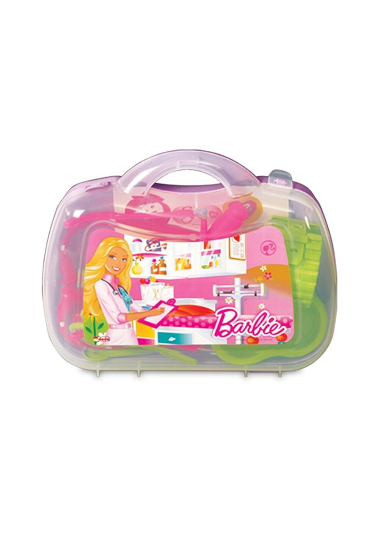 Barbıe doktor çantası özellikleri: Çantalı dr. Seti, steteskopu ve birbirinden farklı şirin görünümlü aletlerle doktorculuk oynarken hem eğlenceli vakitler geçirecek hem de doktor fobisini ortadan kaldıracaklar. * barbie lisanslı 9 parça * ışıklı el çantalı doktor seti * şırınga * kimlik kartı * ilaç kutusu * termometre * ayna ışıklı * stetoskop (kalp atışı sesli ışıklı) * otoskop (ışıklı) * makas * refleks çekici * özel medikal seti için çanta Kutu ölçüleri : 7,5 x 26 x 23 cm.