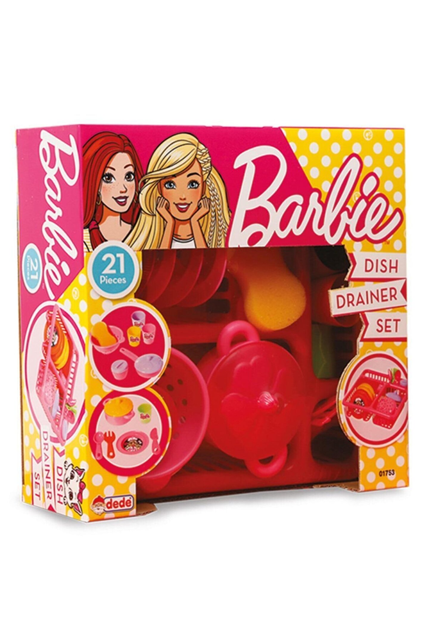 Barbie bulaşıklık 21 parça Barbie bulaşık seti kızların çok hoşuna gidecek tencere, tabak, kaşık, çatal gibi mutfak aksesuarlarını içeren Barbie bulaşık seti ile oldukça eğlenceli vakitler geçirebilirler Bu oyuncaklar çocukların rol ve taklit yeteneklerinin gelişmesinde büyük katkı sağlar. ; Sepeti sayesinde çocuklar yıkadıkları mutfak aksesuarlarını sepete kolayca koyarak düzenli bir şekilde tutabilirler Ürün boyutları:29 x 30 x 11 cm Yaş grubu : 3+ yaş Barkodu: 8693830017533 Item no : 01753 Kutu ölçüleri : 31 x 30 x 11,5 cm. ; Desi değeri: 4;
