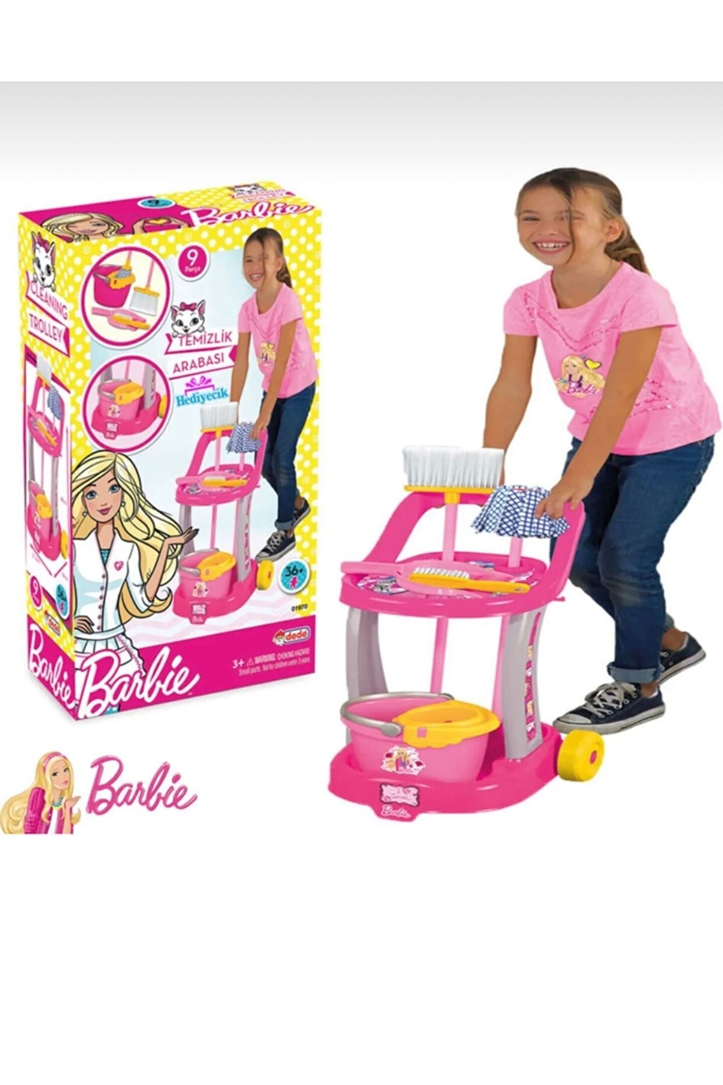 Barbie Temizlik Arabası Bu Oyun Seti ile çocuklarınız oldukça eğlenceli vakit geçirebilir. ; Oyunlarının vazgeçilmezi olacak ürün onların çok hoşuna gidecek. ; Kurulu Boyutu : 48 x 36 x 31,5 cm Parça Sayısı : 9 parça Bu oyuncaklar çocukların hayal gücünün gelişimine büyük rol oynar. ; % 100 Yerli Üretim CE Standartlarına göre üretilmiştir. ; Sağlığa Zararlı Hiçbir Materyal İçermez. ; Yaş Grubu : 3+ Yaş Barkodu: 8693830019704 Item No : 01970 Kutu Ölçüleri : 55,5 x 32,5 x 15 cm.;