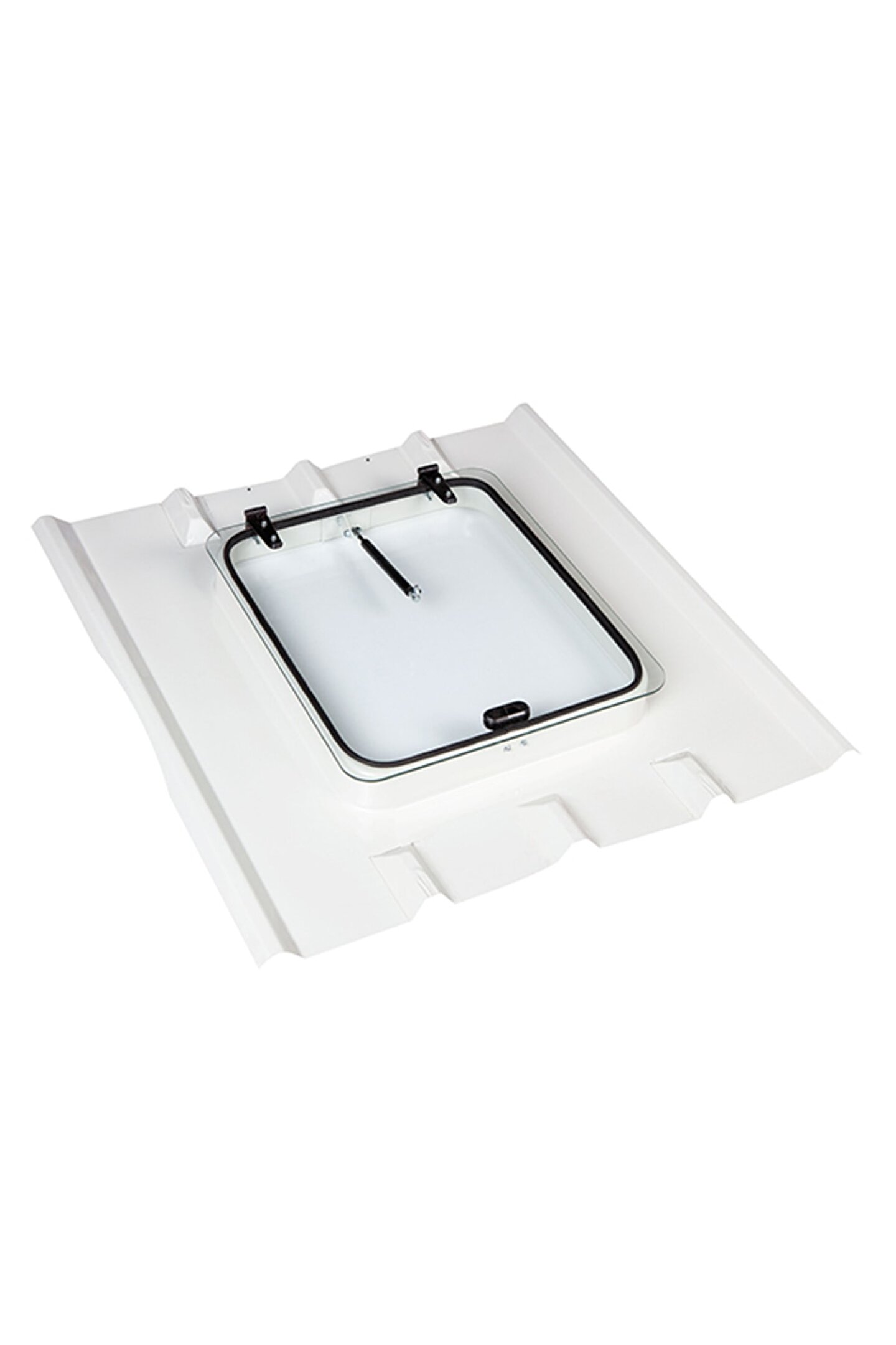 Trapez Uyumlu Çatı Çıkış Kapağı, Pres Baskılı, Cam Kapaklı Amörtisörlü Arkaya Açılır, Geniş Çıkışlı, Elektrostatik Fırın Boyalı, Çerçeve Çıkış Kenarları Fitillidir, 5 mm Temperli Cam. Renk: Bordo Ral 3009, Antresit Gri Ral 7016, Beyaz Ral 9002 Çıkış Ölçü: 500 x 600 mm