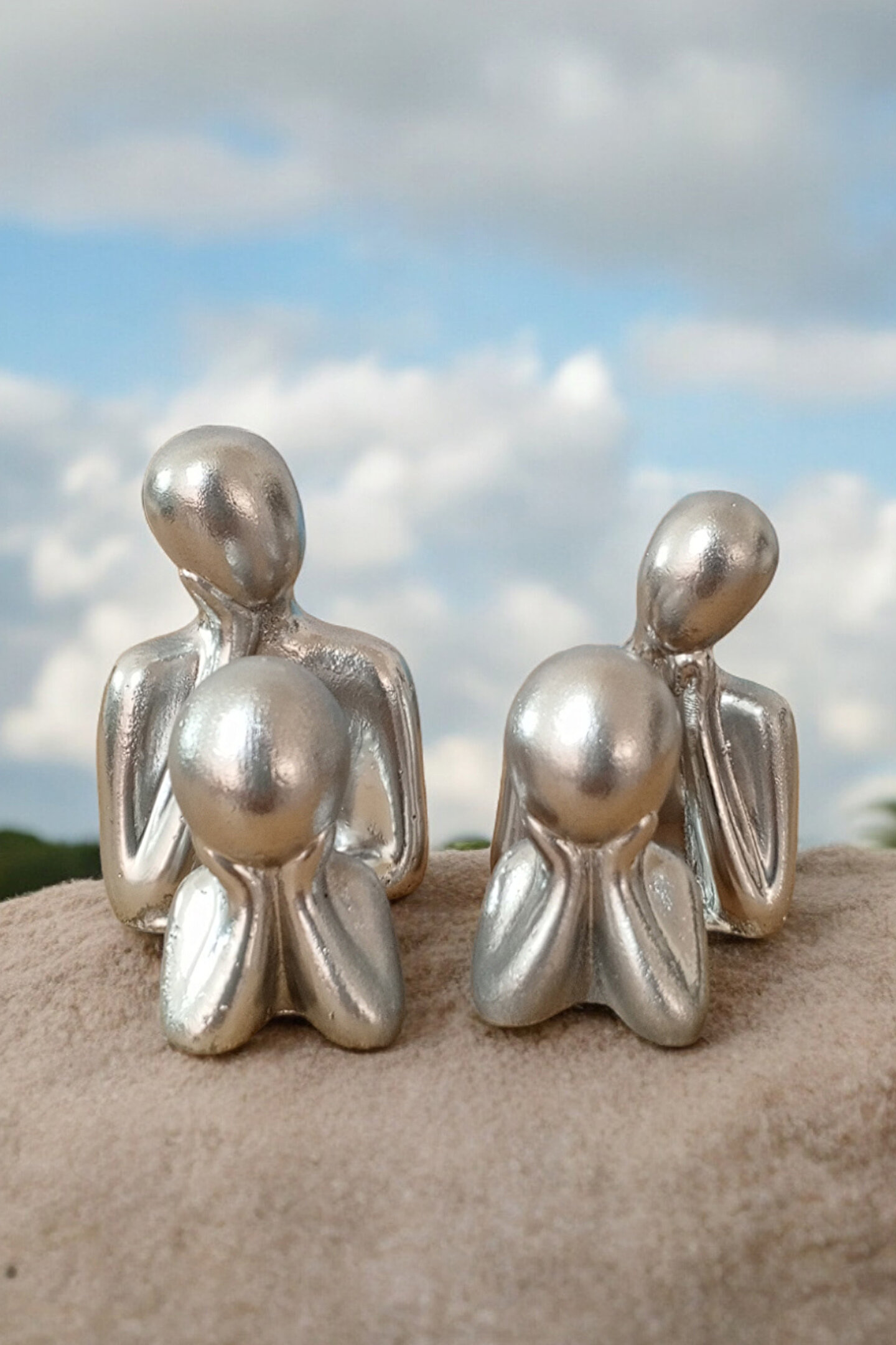 Dekoratif Bİblo İki Çocuklu Aile Biblo seti gümüş