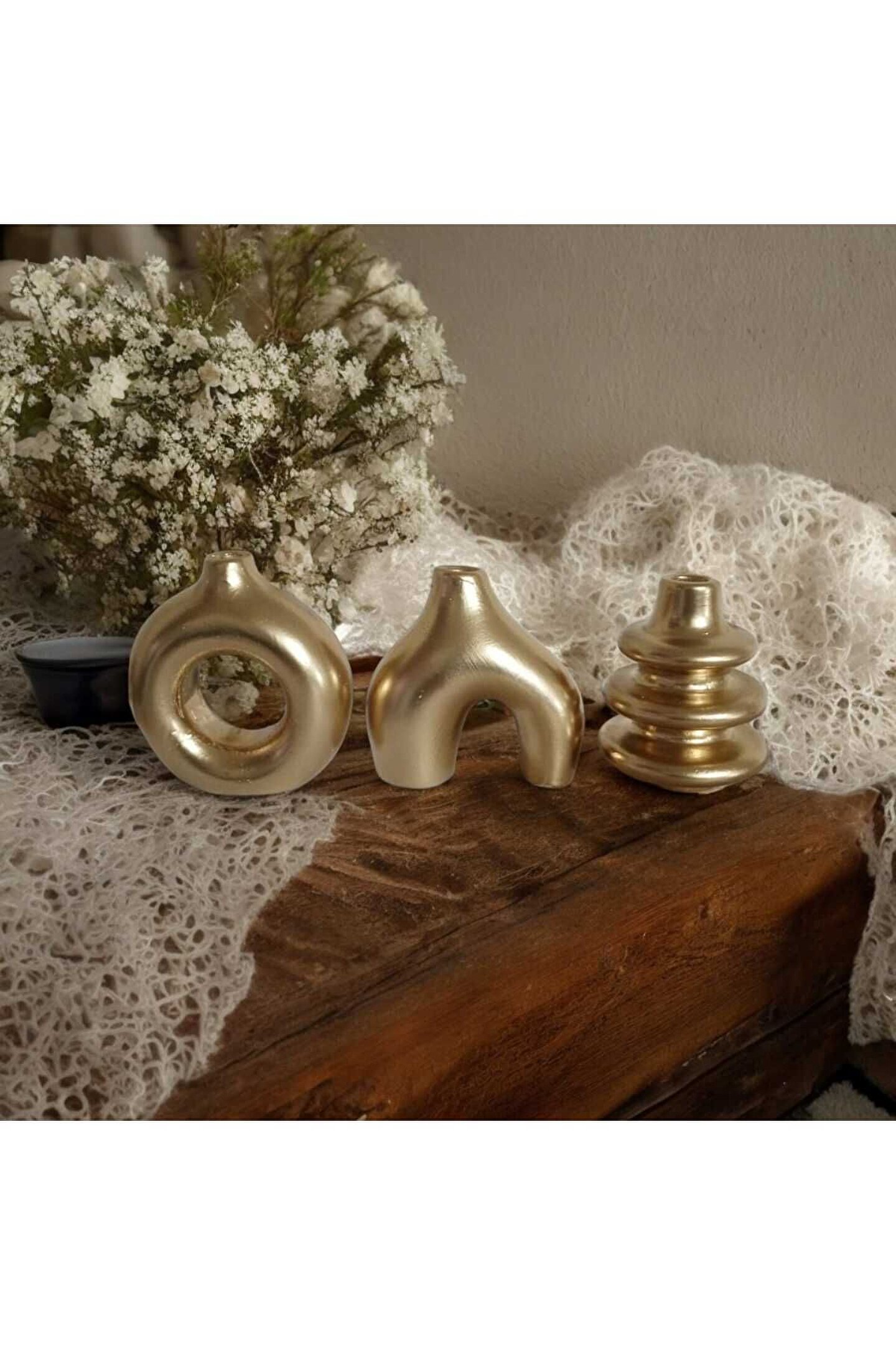 Ürün içeriği 3 adet minimal vazodur. ; Ürün ölçüleri yükseklik 10 cm çap 8 cmdir. ; Ürün alçı taş tozu karışımından yapılmaktadır. ; Patpat ve kutulanarak gönderilir. ; Kırılma tehlikesi minimuma indirilir. ; Ürün tek renktir. ; Rengi kırık beyazdır. ; Ürünler yıpranmaya dayanıklıdır. ; Solma dökülme yapmaz. ; Hafif nemli toz bezi ile rahatça temizlenir. ; Estetik duruşu ile evinizin her köşesine uyacaktır. ; Kuru çiçekler için kullanışlıdır. ; Suyla teması önerilmez.;